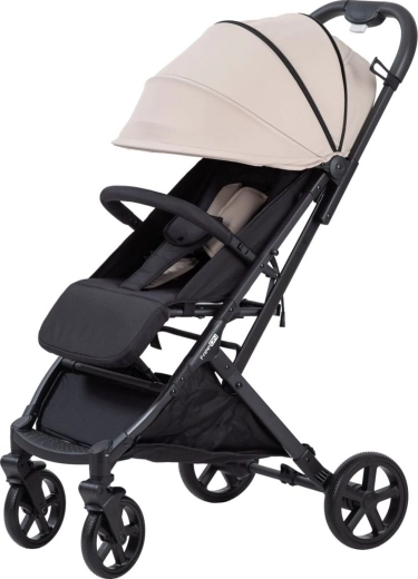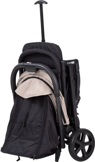 Der Kinderwagen lässt sich auf ein kompaktes Maß zusammenklappen und dank integriertem Tragegurt oder Teleskopgriff bequem tragen oder wie ein Gepäckstück ziehen.