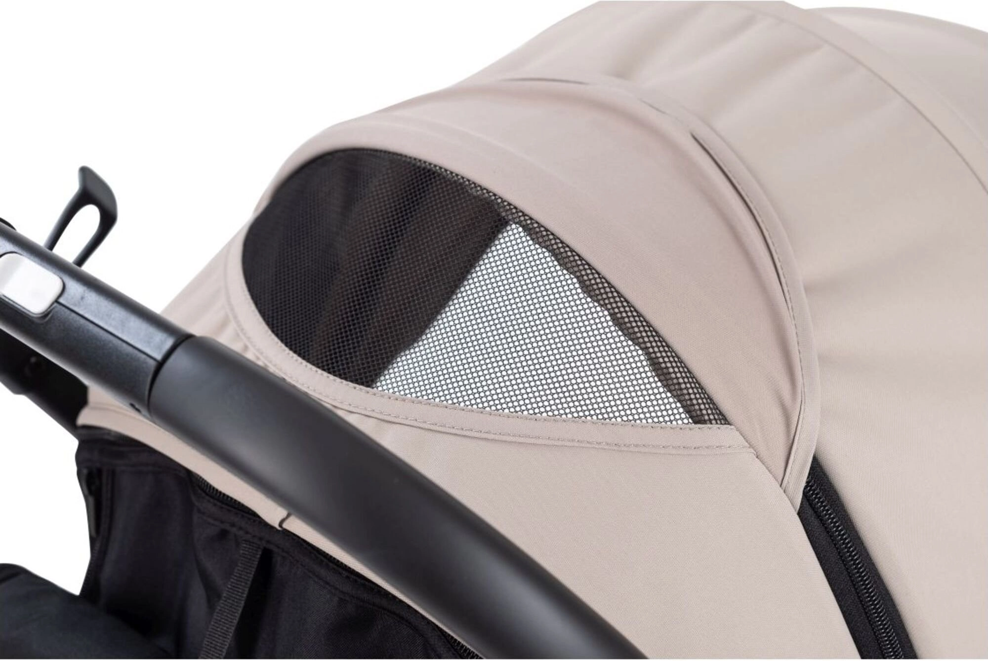 Das verstellbare Verdeck mit Mesh-Fenster sorgt für Luftzirkulation und ermöglicht es, das Kind auch während der Fahrt im Blick zu behalten.