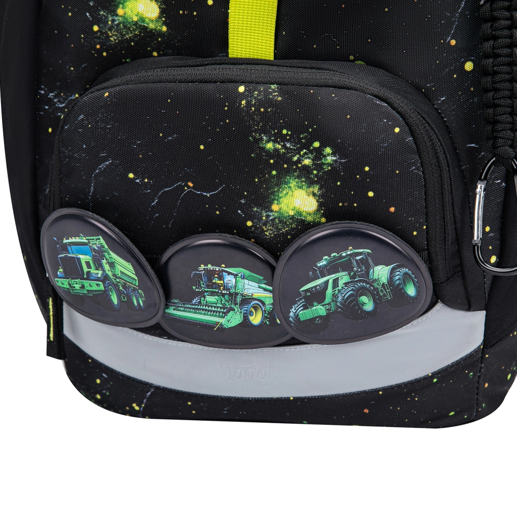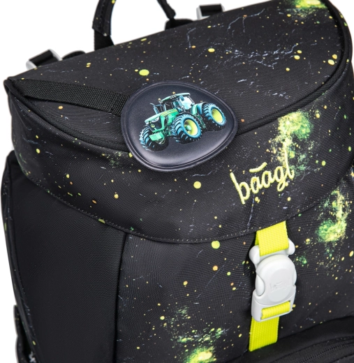 Das Schulset BAAGL Airy Traktor wurde für komfortables und sicheres tägliches Tragen entwickelt. Der Rucksack mit nur 750 g schont den Rücken der Schulkinder, hat ein ergonomisch geformtes Rückenteil mit AIRFLOW ERGO-Atmungsaktivität sowie ein System vollständig verstellbarer Träger und unterstützender Gurte für eine gleichmäßige Gewichtsverteilung. Der intuitive Magnetic Click-Verschluss ist auch für die Kleinsten leicht zu bedienen, und die einkammerige Aufteilung mit Innenfach und Gummiband erleichtert die übersichtliche Organisation der Schulutensilien.