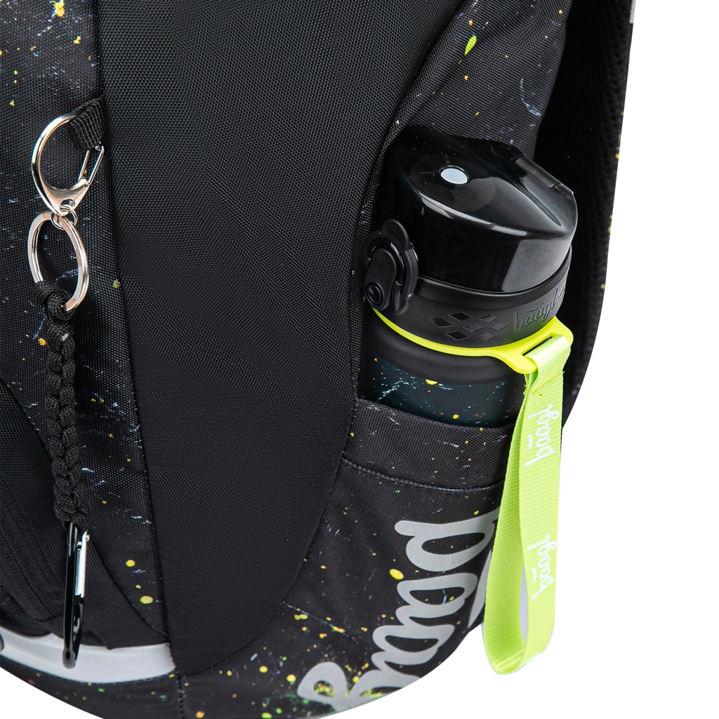 Zum Set gehört ein geräumiges einlagiges Federmäppchen mit zwei Klappen, hochwertigem YKK-Reißverschluss, kleinem Fach für Kleinigkeiten und Sichtfenster für den Stundenplan. Stabile Gummischlaufen halten auch dreikantige Buntstifte und Filzstifte. Der Beutel mit Reißverschlusstasche eignet sich ideal für Hausschuhe, Sportunterricht oder Freizeitaktivitäten, mit widerstandsfähigem abwischbarem Material, stabilen Kordeln und einer Schlaufe zur einfachen Befestigung am Rucksack.