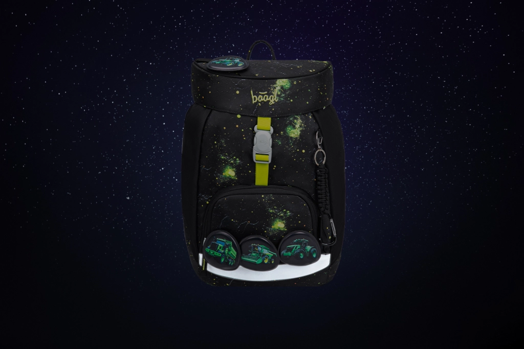Das gesamte Set besteht aus recycelten, wasserabweisenden Materialien und ist mit reflektierenden Elementen für mehr Sicherheit in der Dämmerung ausgestattet. Das Design des Rucksacks lässt sich mithilfe abnehmbarer Badges verändern, die Kinder lieben werden. Die Produkte wurden in einem akkreditierten Labor getestet und tragen die Global Recycled Standard (GRS)-Zertifizierung.