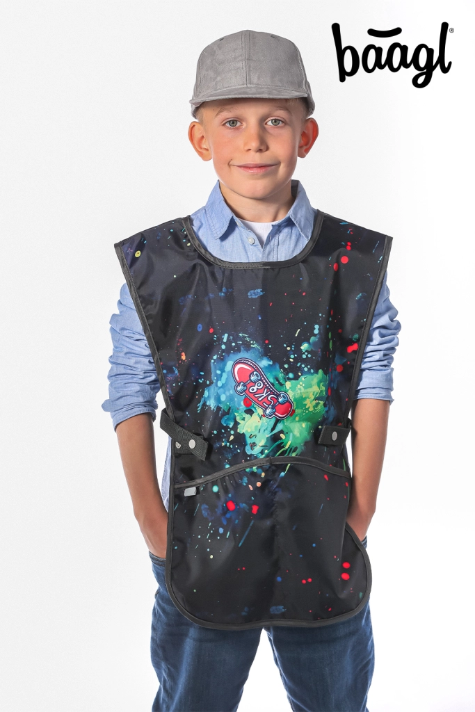 Zum Set gehören ein einlagiges Federmäppchen mit YKK-Reißverschluss, ein Beutel mit Reißverschlusstasche, eine Halsgeldbörse und eine Schürze. Alles im abgestimmten Chill-Design mit reflektierenden Elementen für mehr Sicherheit.