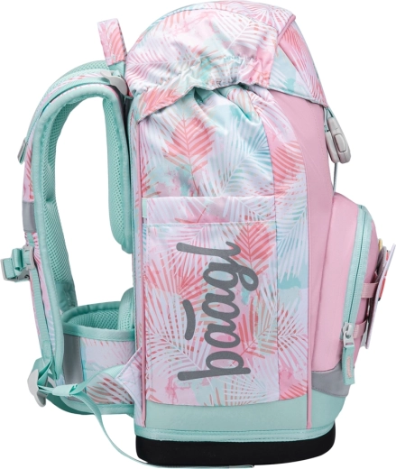 Durchdachte Organisation umfasst das Hauptfach mit Organizer, Schutzmappen für Hefte, einen praktischen Deckel mit Reißverschlusstasche und eine vordere Thermotasche für Snacks. Der moderne Look wird durch auswechselbare Abzeichen (Baaglies) und markante reflektierende Elemente ergänzt. Das einlagige Federmäppchen mit Markenreißverschluss YKK lässt sich komplett aufklappen, verfügt über ein kleines Fach für Kleinigkeiten, ein Stundenplanfenster und feste Gummischlaufen auch für dreikantige Buntstifte (wird ohne Inhalt geliefert). Der Beutel mit Kordelzug ist ideal für Hausschuhe oder Sport, die Schürze schützt beim Kunstunterricht und die Geldbörse sorgt dafür, dass das Taschengeld sicher bleibt.