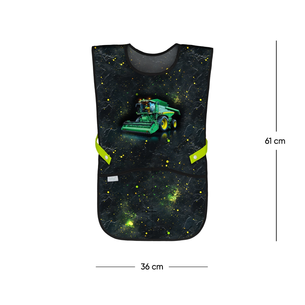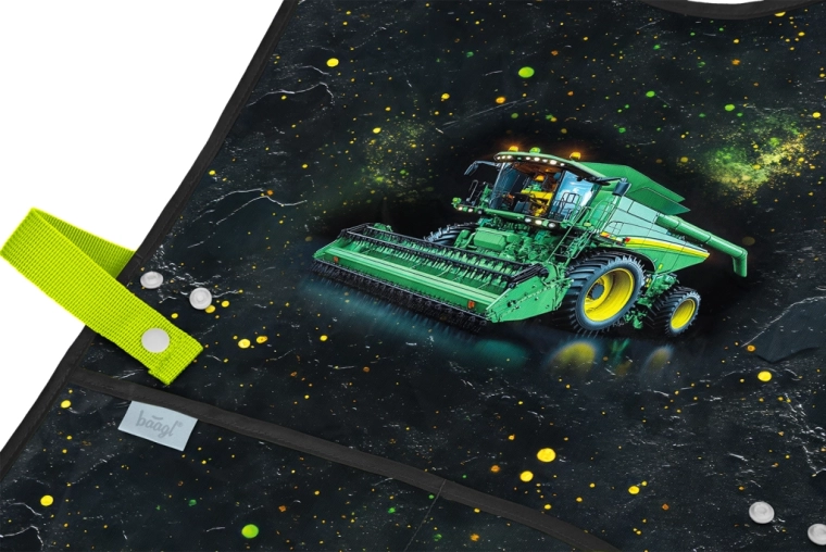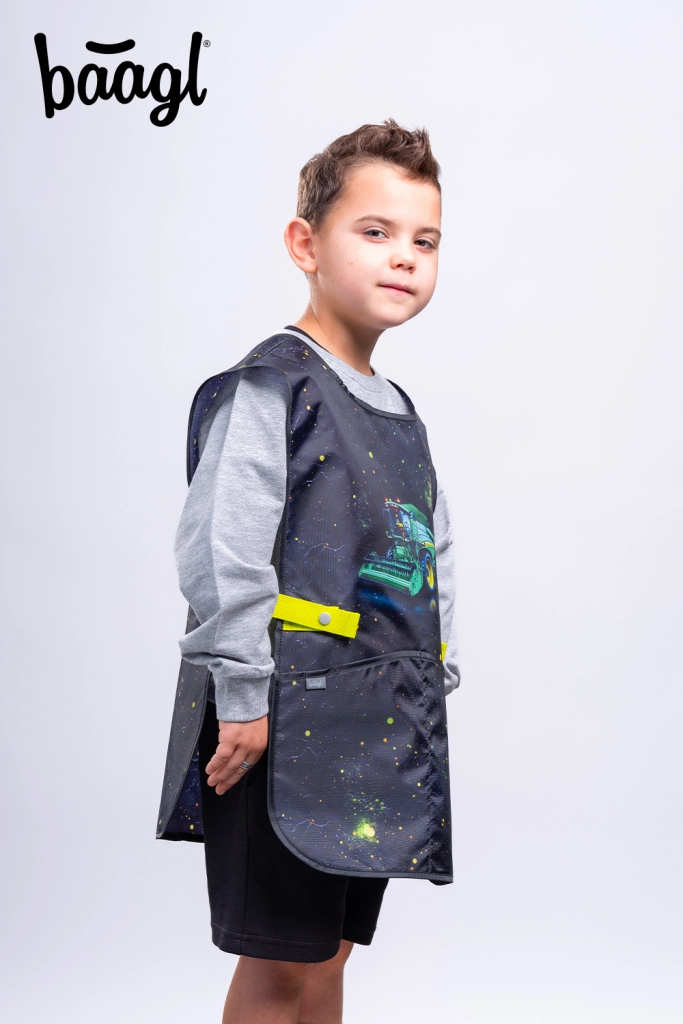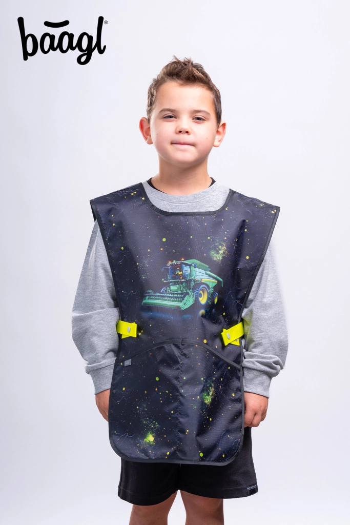Praktische Kinder-Schürze von BAAGL mit TRAKTOR-Motiv – ideal für den Kunstunterricht, handwerkliche Aktivitäten und Freizeitkurse. Bietet ein abwaschbares Material, zwei geräumige Taschen und eine nachhaltige GRS-Zertifizierung für Umweltfreundlichkeit.