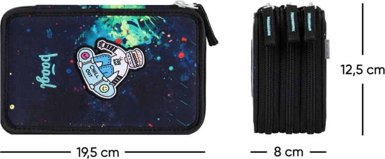 Suchen Sie ein geräumiges und langlebiges Federmäppchen für die Schule? Das dreistöckige Federmäppchen Baagl Chill GRS bietet ausreichend Platz für Buntstifte, Filzstifte, Stifte und weiteres Zubehör. Die Gummischlaufen sind so gestaltet, dass sie auch stärkere Schreibgeräte aufnehmen, und der verstärkte Rücken erleichtert die tägliche Handhabung beim Schließen.