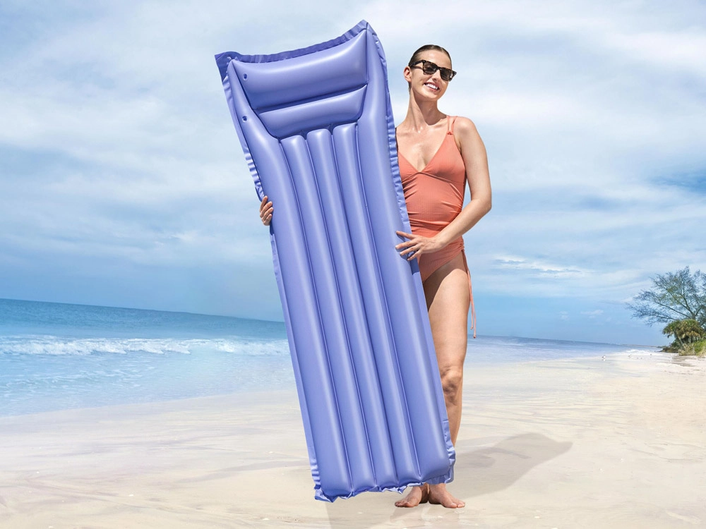 Dank des geringen Gewichts und der kompakten Maße im entleerten Zustand passt die Matratze mühelos in die Strandtasche oder den Rucksack. Sie ist ideal für Pool, See und ruhige Meeresgewässer und begeistert alle, die entspannt am Wasser relaxen möchten.