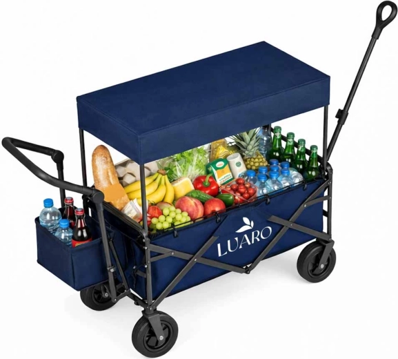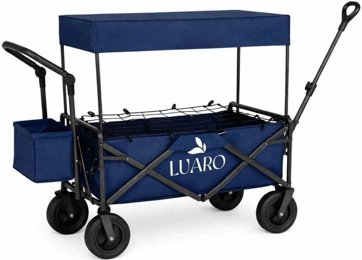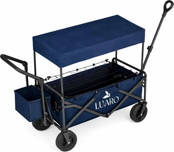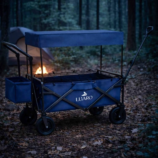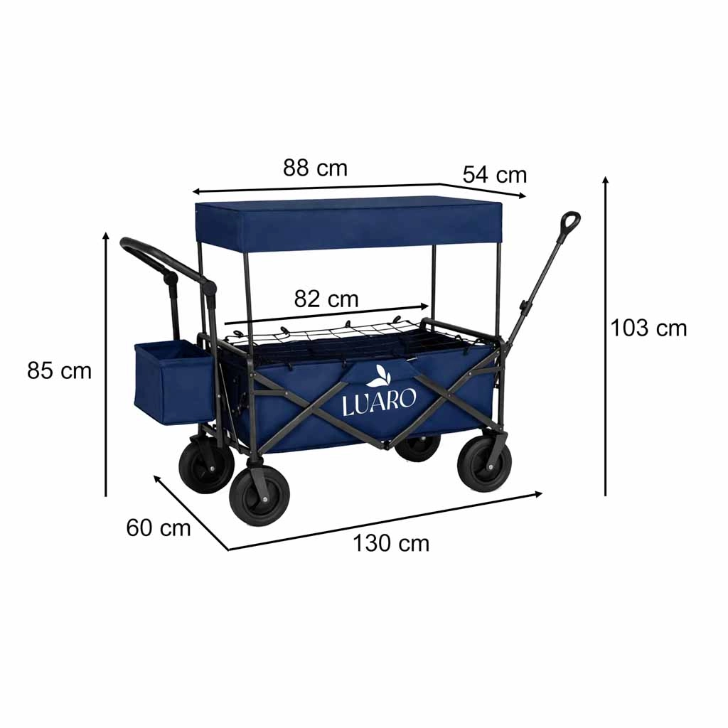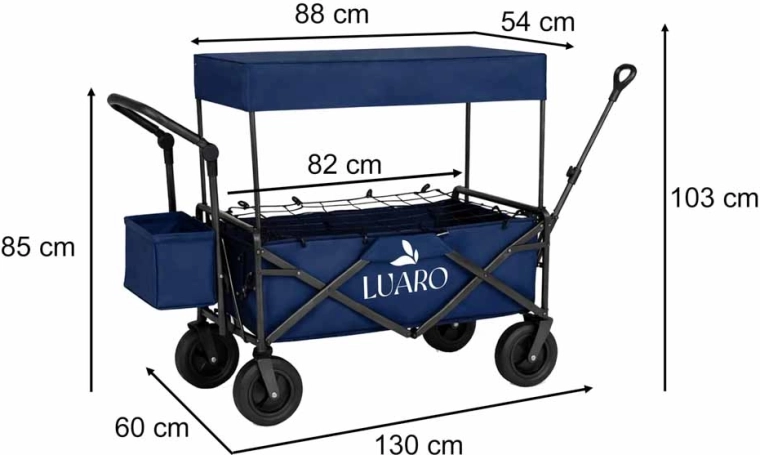 Mit dem LUARO Wagen erhalten Sie einen zuverlässigen Helfer für Familienausflüge, Strandtage und Camping. Der stabile Stahlrahmen und der widerstandsfähige Oxford-600D-Stoff gewährleisten Stabilität und lange Lebensdauer, während die großen Geländeräder Sand, Gras und Pflaster mühelos meistern. Der Wagen kann gezogen oder geschoben werden und passt sich dank höhenverstellbarer Griffe bequem Ihrer Körpergröße an.