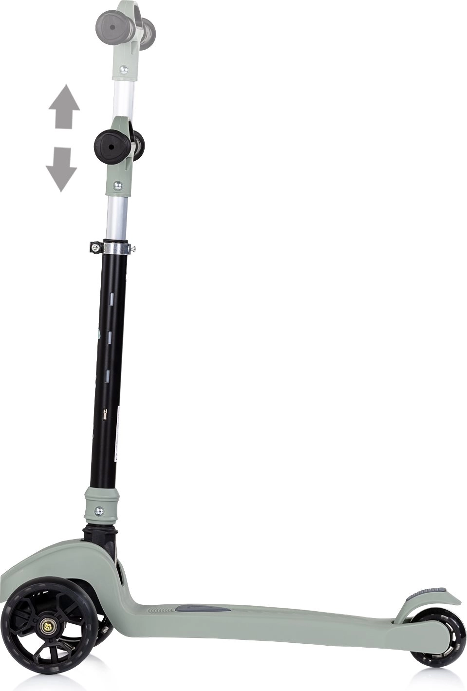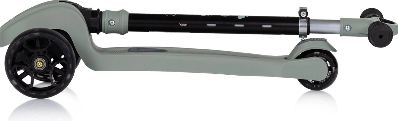 Der Roller begeistert mit bunten LED-Leuchten in den Rädern sowie Musik- und Lichteffekten, die jede Fahrt unterhaltsamer und besser sichtbar machen. Die faltbare Konstruktion erleichtert Aufbewahrung und Transport, während die Trittbremse am Hinterrad für schnelles und sicheres Abbremsen sorgt. Für den Betrieb der Effekte werden 3× AAA 1,5 V Batterien benötigt (nicht im Lieferumfang enthalten).