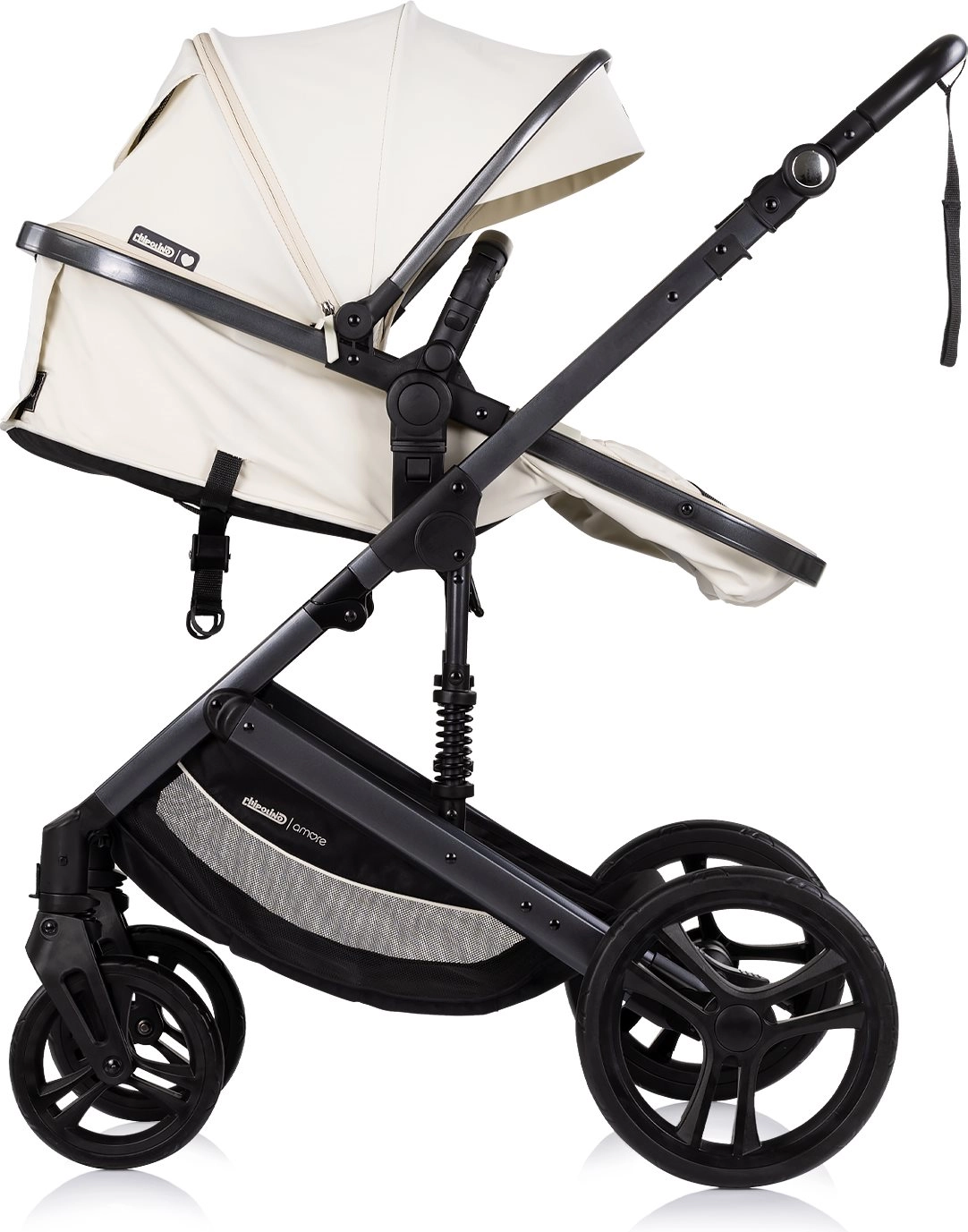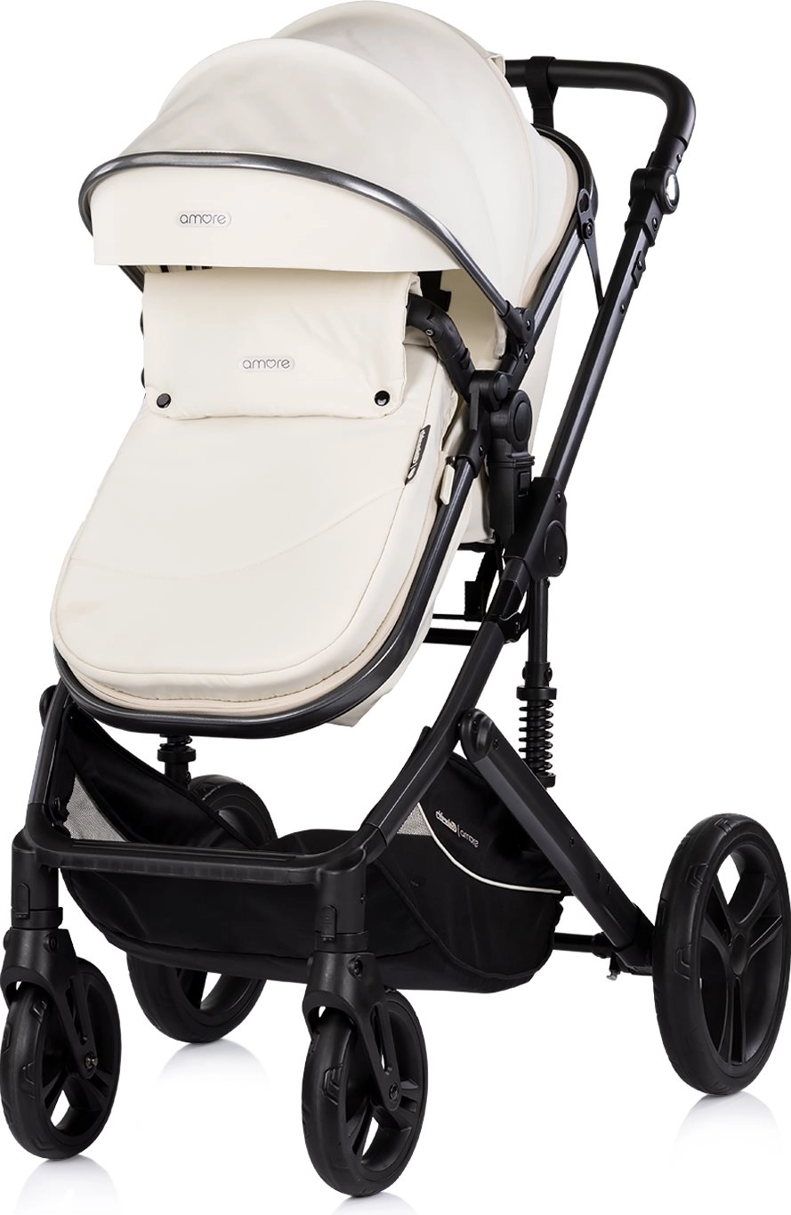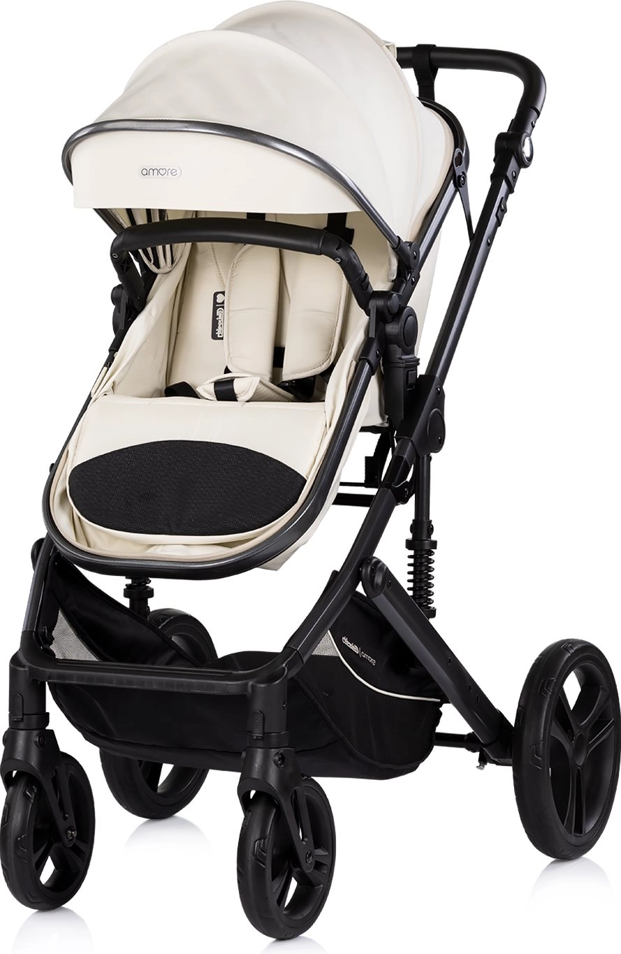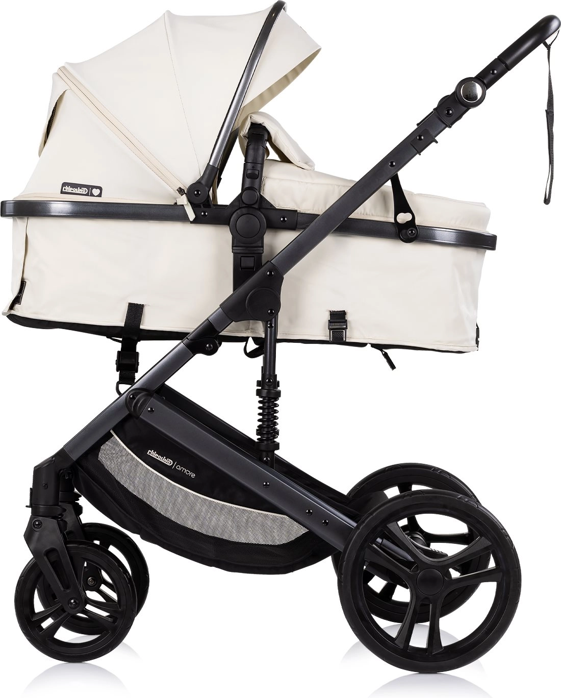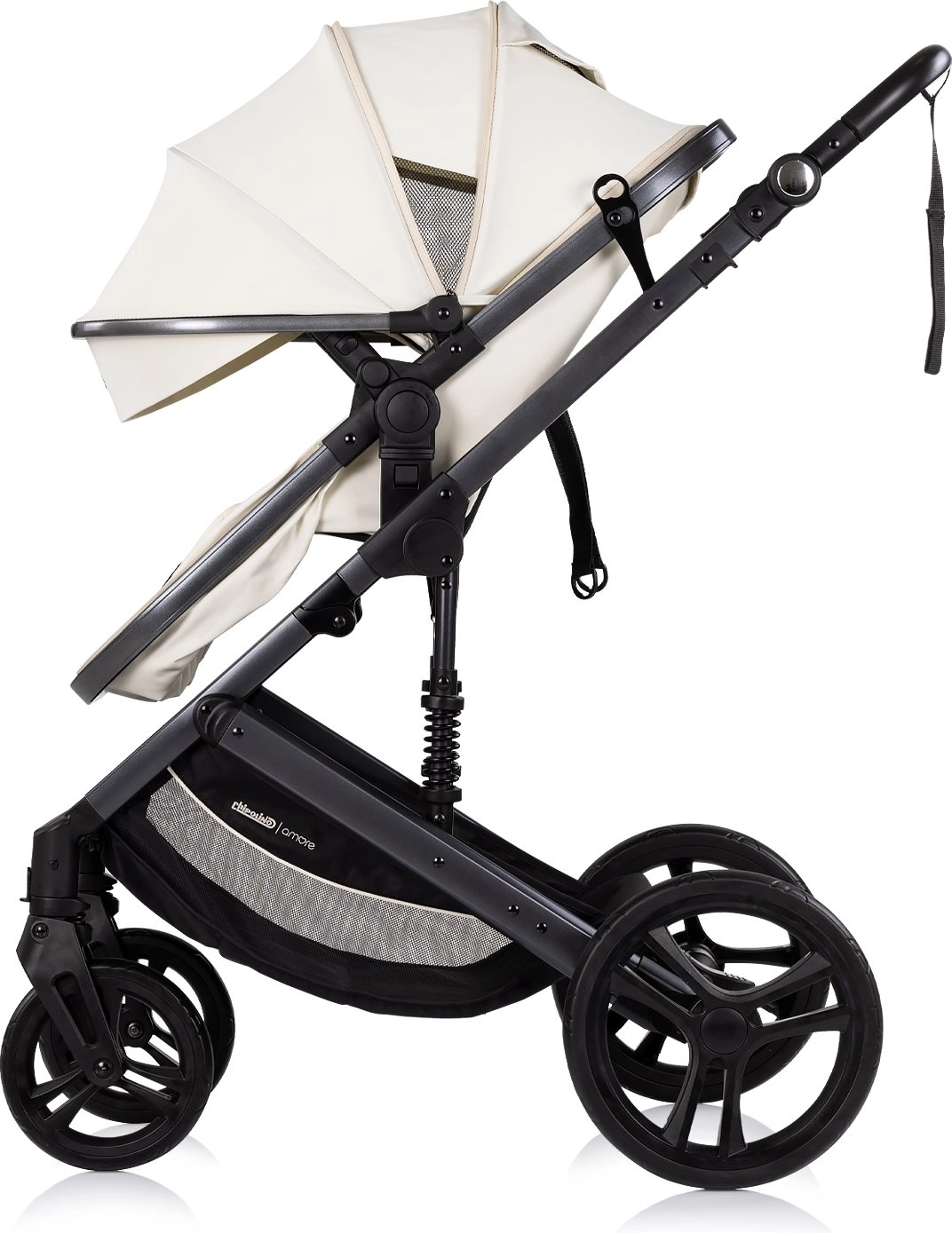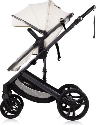 Der Chipolino Amore 2-in-1 in der Farbe Cashmere ist ein vielseitiger Kinderwagen, der sich leicht vom Sportsitz zur Babywanne für Neugeborene umbauen lässt. Dank gefedertem Rahmen und großen geländetauglichen Rädern bietet er eine ruhige und komfortable Fahrt in der Stadt und auf leichtem Gelände. Das verstellbare Verdeck mit Sonnenblende schützt das Kind, während der gepolsterte 5-Punkt-Gurt und der abnehmbare Bügel die Sicherheit erhöhen.