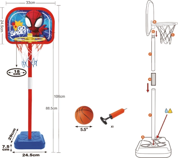 Entdecken Sie das bunte Basketballset mit dem Superheldenmotiv SPIDEY, das Präzision, Hand-Auge-Koordination und die allgemeine körperliche Fitness fördert. Dank stufenloser Höhenverstellung ist es für verschiedene Altersgruppen geeignet und ideal sowohl für das Kinderzimmer als auch für den Garten.