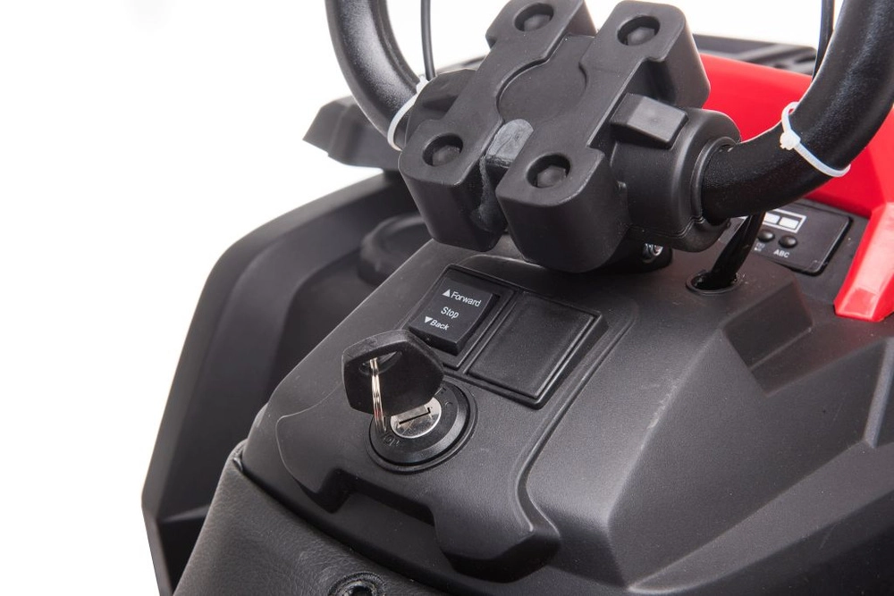 Lenker mit rutschfesten Griffen, Zündschlüssel und Fahrtrichtungsschalter (vorwärts/stop/rückwärts) ermöglichen Kindern sicheres Anfahren und Anhalten.