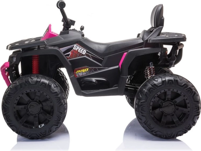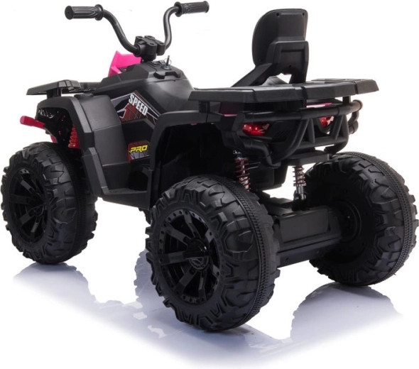Das rosa‑schwarze Design mit Schutzstoßfänger und realistischen Details verleiht dem Quad einen attraktiven Offroad‑Stil.