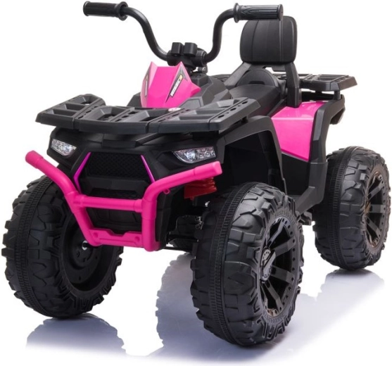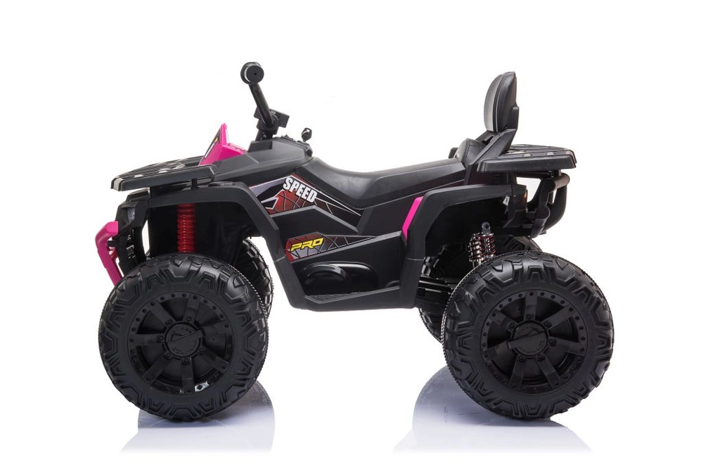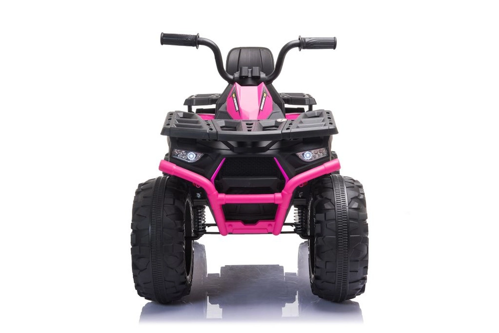 Dieses elektrische Kinder‑Quad kombiniert einen attraktiven Offroad‑Look mit praktischen Features für eine bequeme und sichere Fahrt. Die robuste Konstruktion, markante rosa Details und die breiten Reifenprofile sorgen für hervorragende Traktion auf festem und leicht unebenem Untergrund. Die Bedienung ist intuitiv – einfach aufsitzen, den Lenker greifen und ins Abenteuer starten.