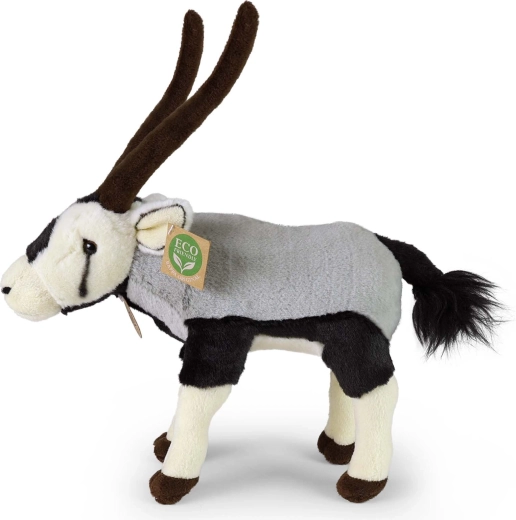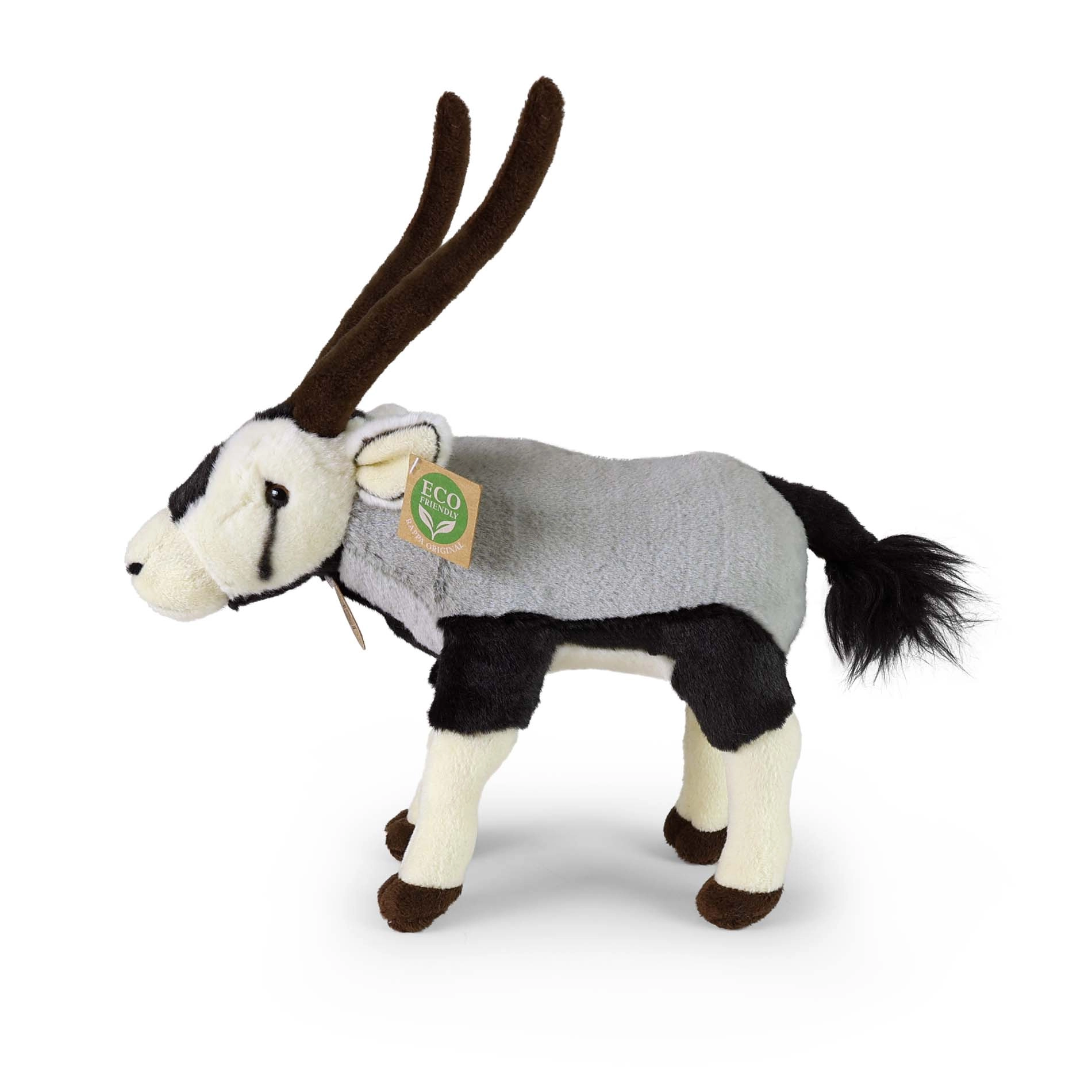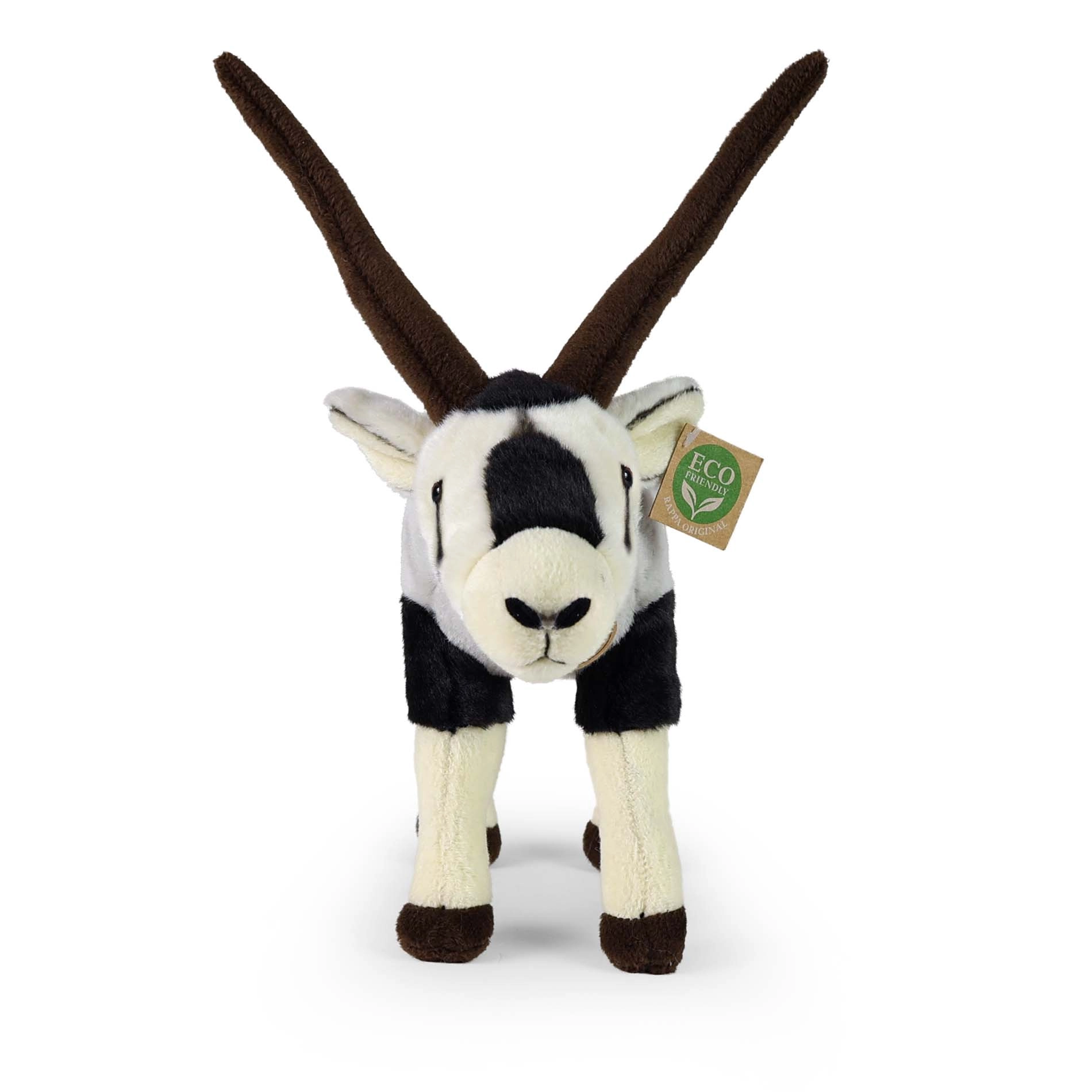 Diese elegante Plüsch-Säbelantilope kombiniert natürliche Färbung, lange Hörner und präzise Nähte und wirkt dadurch wie lebensecht. Sie gehört zu einer exklusiven Plüschtierkollektion und ist so gestaltet, dass sie auch für die kleinsten Kinder sicher ist.