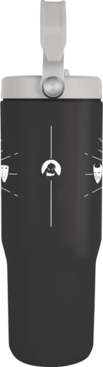 Der praktische, verschließbare Deckel mit Trinköffnung reduziert ungewolltes Spritzen und ist ideal für Reisen, die Arbeit oder Outdoor-Aktivitäten. Die robuste Ausführung in Schwarz mit weißem Druck passt perfekt zum Alltagsstil und überzeugt als lizenziertes Geschenk wie auch als Sammlerstück.