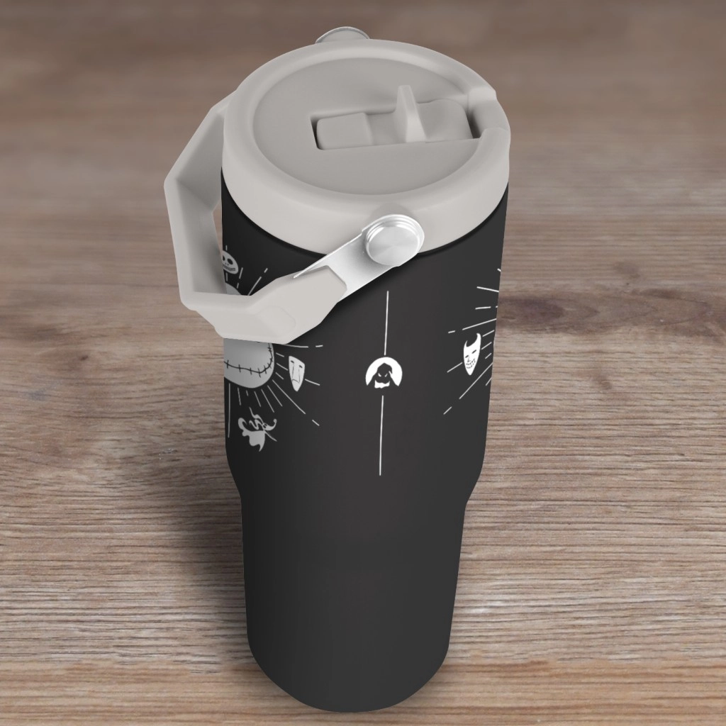 Das beliebte Motiv von JACK SKELLINGTON und ikonische Symbole aus dem Film verleihen dem Becher einen markanten Look, der sofort ins Auge fällt. Die ergonomische Form und der konturierte Körper bieten einen sicheren Griff, während der klappbare Henkel am Deckel das Tragen in der Hand, im Rucksack oder im Auto erleichtert.