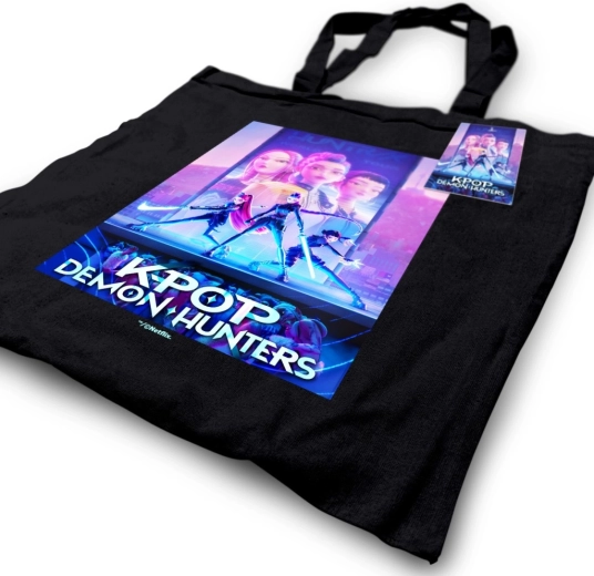 Canvas-Tasche K-pop Demon Hunters schwarz mit Key-Art-Motiv