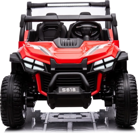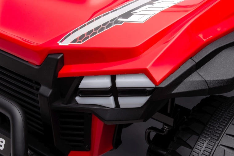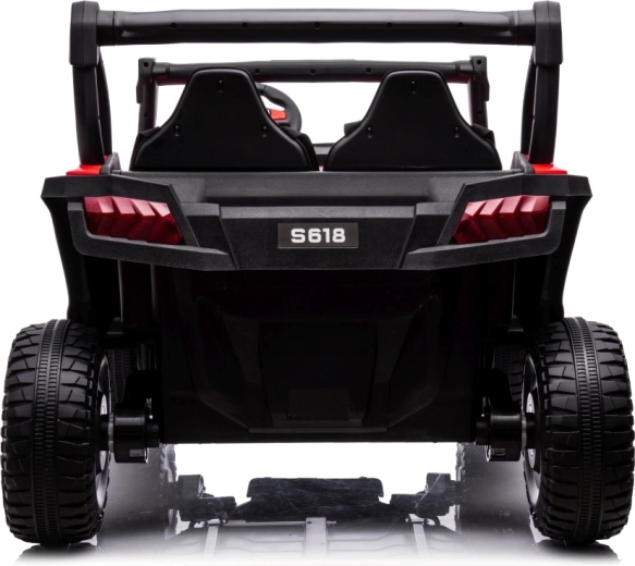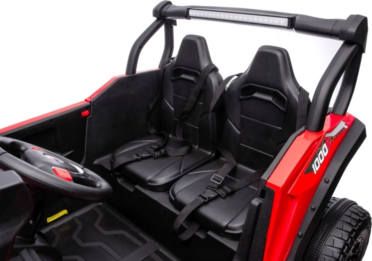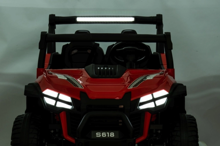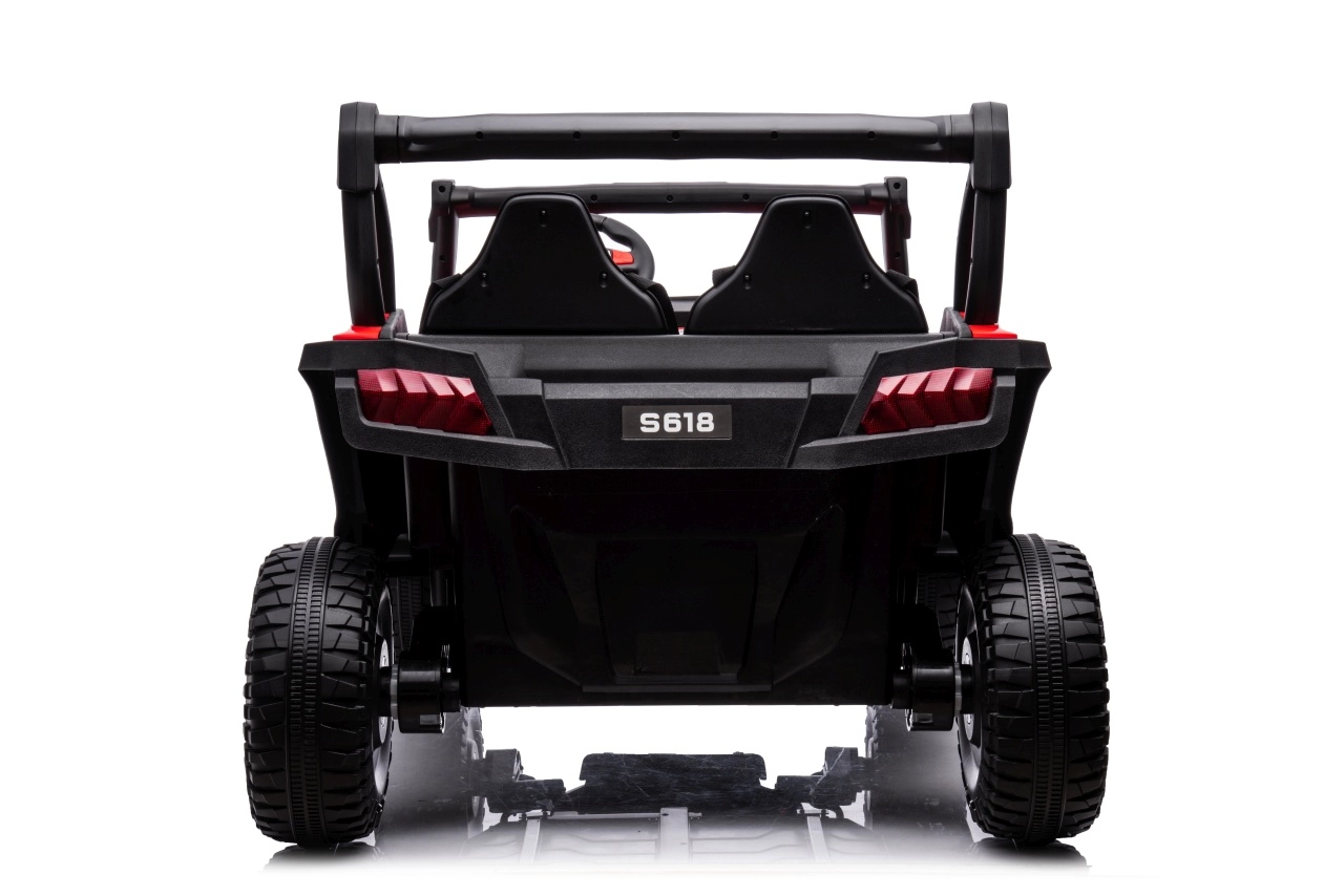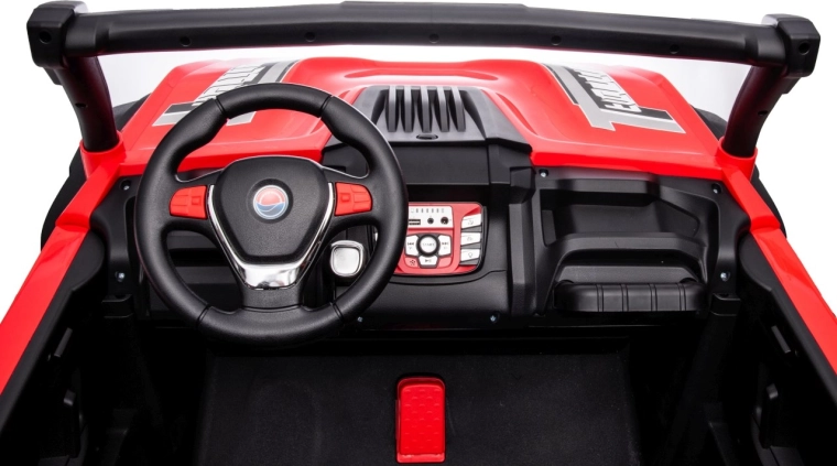 Dieses Offroad-Buggy ist für kleine Abenteurer gemacht. Zwei leistungsstarke Motoren 2×80 W in Kombination mit einer 24V/7Ah-Batterie geben Sicherheit in leichtem Gelände, während die großen EVA-Räder 34 × 13 cm hervorragende Traktion und eine leisere Fahrt gewährleisten. Für Komfort sorgen der breite Zweisitzer aus Ökoleder und die Sicherheitsgurte, die die Kinder sicher halten.