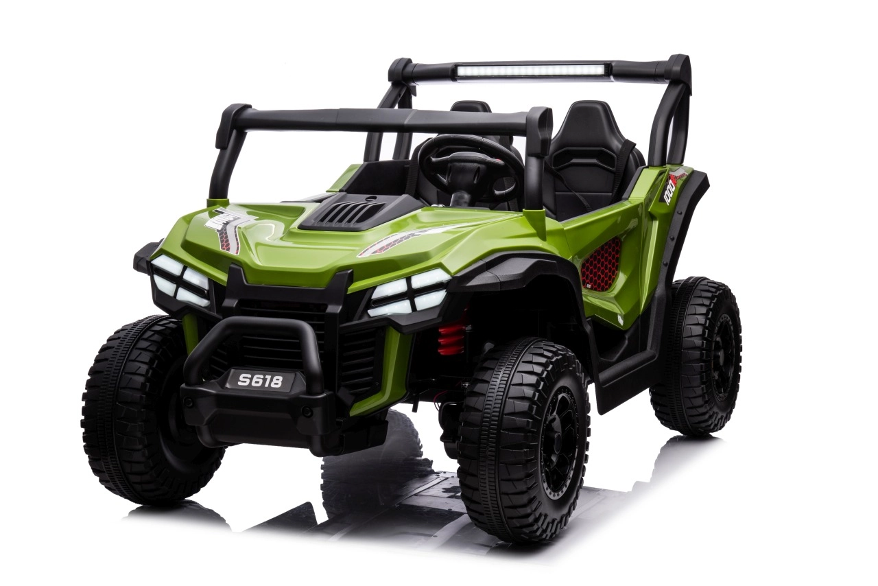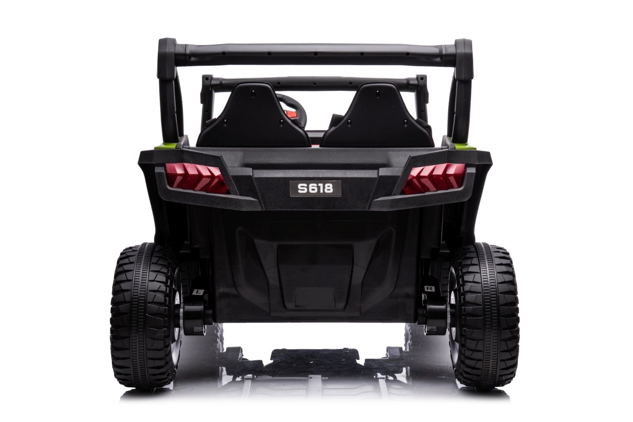 Das robuste Kinderbuggy Gravity 4x4 ist für kleine Abenteurer gemacht. Das leistungsstarke Set aus 2×80 W und einem 24V-7Ah-Akku sorgt für sanfte Anfahrten mit Soft-Start, zwei Vorwärts-/Rückwärtsgeschwindigkeiten und Sicherheit auch in leichtem Gelände dank geländegängiger EVA-Räder und hinterer Stoßdämpfer. Für Sicherheit sorgen Sicherheitsgurte, zu öffnende Türen und die elterliche Kontrolle über die 2,4-GHz-Fernbedienung mit Notstopp.