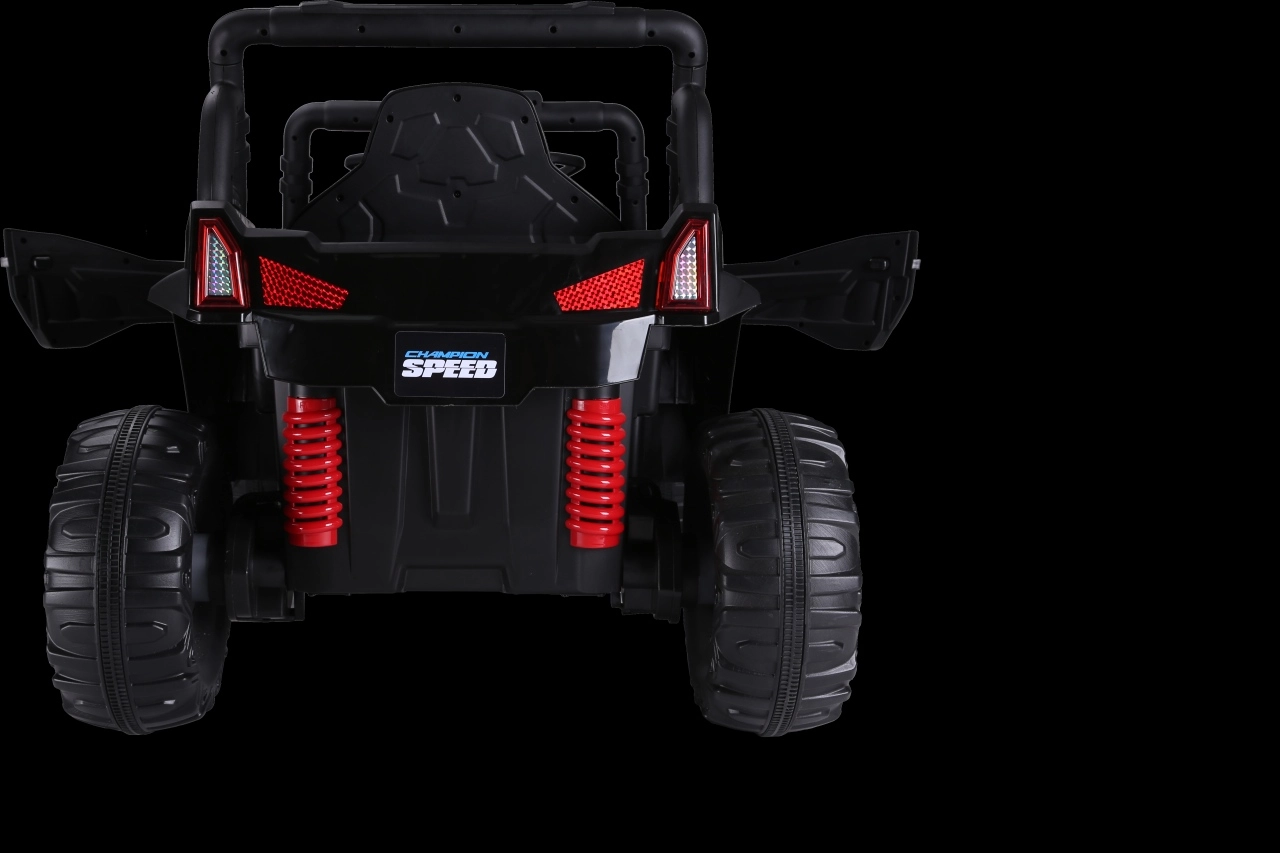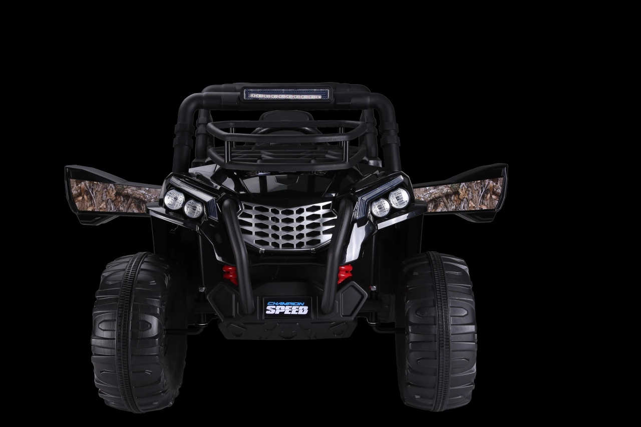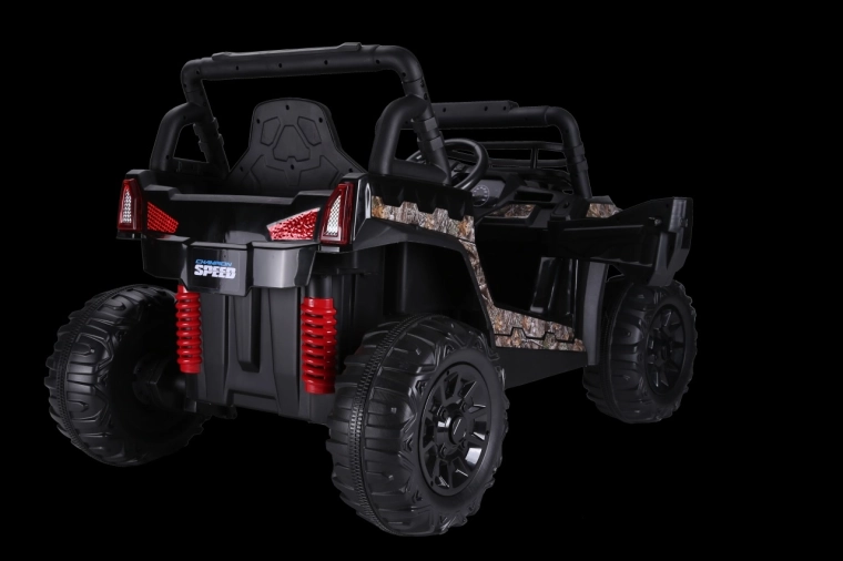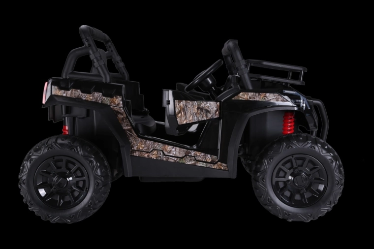 Leistungsstarker Kinder-Geländewagen UTV LIFT mit zwei Motoren 2×200 W und 24 V 5 Ah Akku sorgt für jede Menge Spaß im Garten und im Park. Er verfügt über weiche EVA-Räder, sanftes Anfahren, 2 Vor- und Rückwärtsgänge sowie öffnende Türen für bequemes Einsteigen. Für Komfort sorgt der Sitz aus Kunstleder mit Gurten, für Stimmung LED-Frontlichter und ein Audiopanel mit USB/MP3.