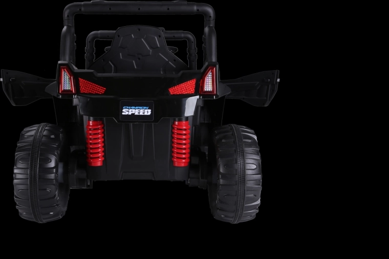 Der Geländewagen UTV LIFT ist das ideale Elektroauto für Kinder, die Abenteuer lieben. Dank der leistungsstarken 2×200 W Motoren und dem 24 V 5 Ah Akku meistert er Unebenheiten und leichtes Gelände. Weiche EVA-Räder 30×12 cm gewährleisten leises Fahren und hervorragende Haftung, die hinteren Stoßdämpfer erhöhen den Komfort. Die elterliche 2,4 GHz Fernbedienung mit 3 Geschwindigkeiten und Sicherheitstaste Stopp ermöglicht stets volle Kontrolle.