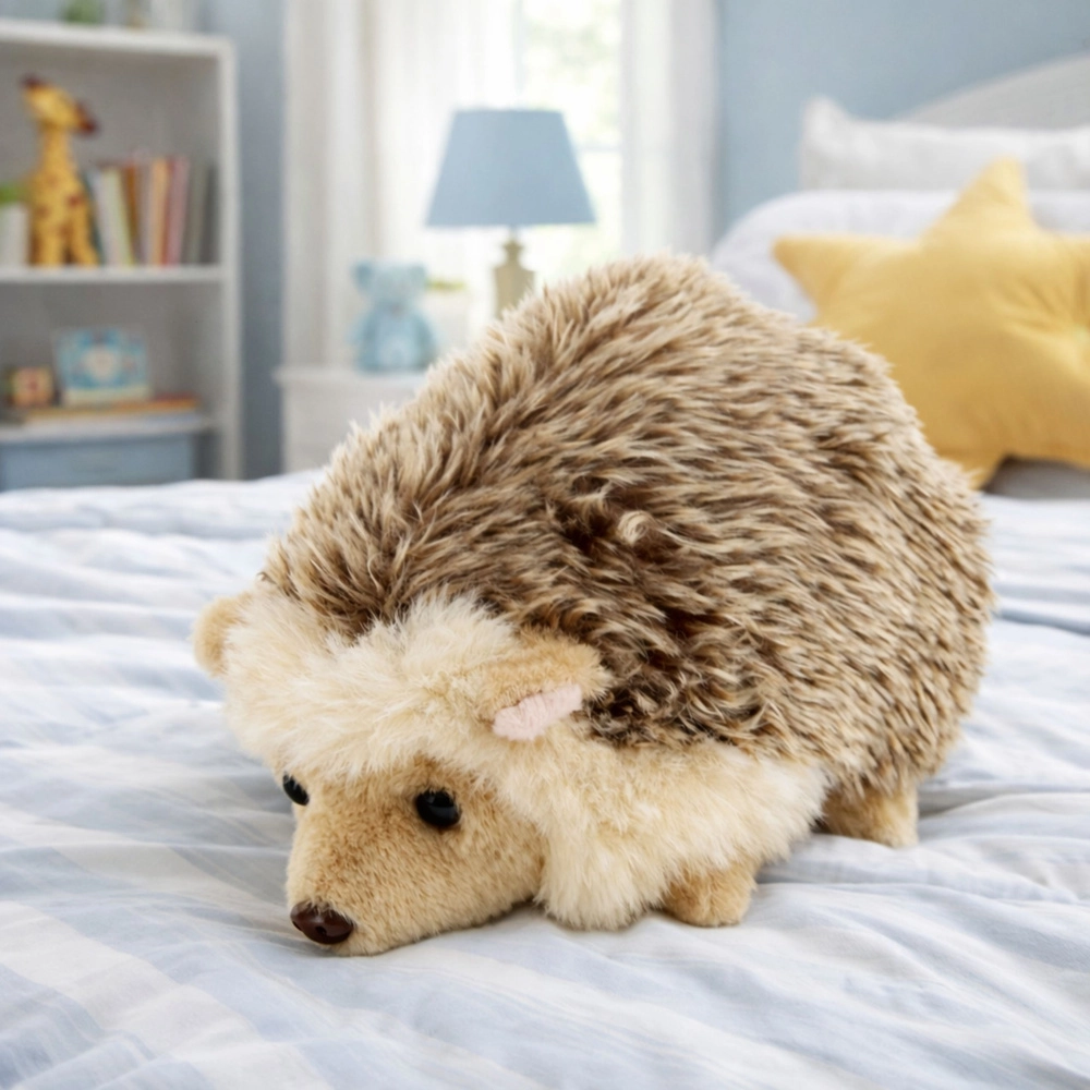 Dieser Plüschigel ist aus hochwertigem, weichem Plüsch gefertigt, der sanft zur Kinderhaut ist und zum Umarmen einlädt. Natürliche braun-beige Farbtöne und sorgfältig gearbeitete Details – Näschen, Öhrchen und weiche „Stacheln“ – verleihen dem Spielzeug ein realistisches Erscheinungsbild.