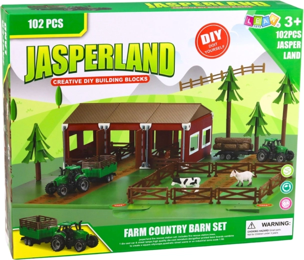 Bauernhof-Bauset mit Scheune, Traktoren und Tieren – 102 Teile