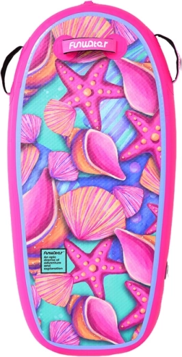 Ein verspieltes Design mit Muschel- und Seesternmotiven sticht am Strand wie auch am See ins Auge. Das Bodyboard ist ideal, um das Wellenreiten zu lernen, das Kraulbeinschlagen zu trainieren und für sicheres Auftriebstraining im Wasser.