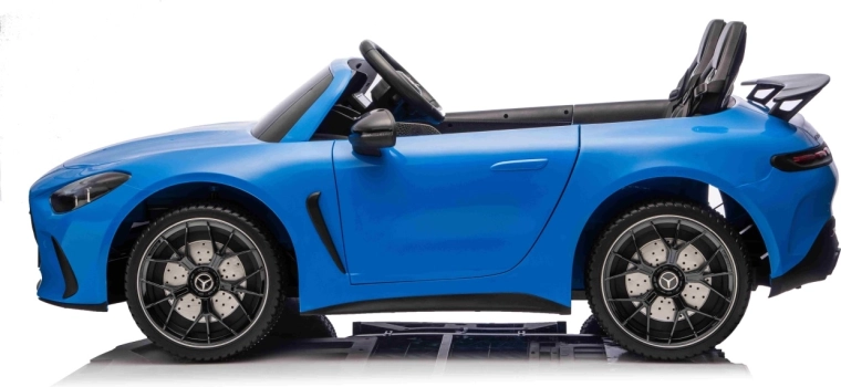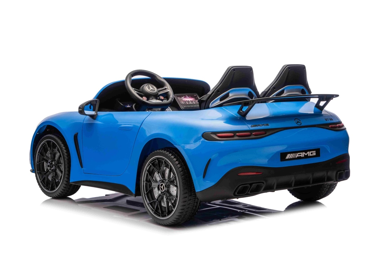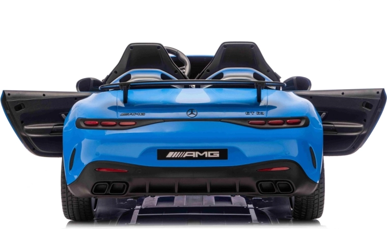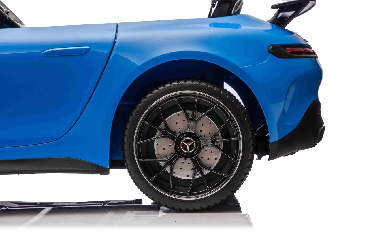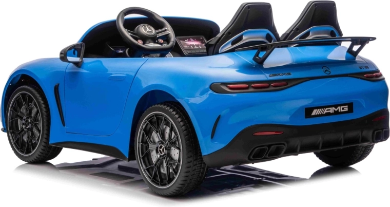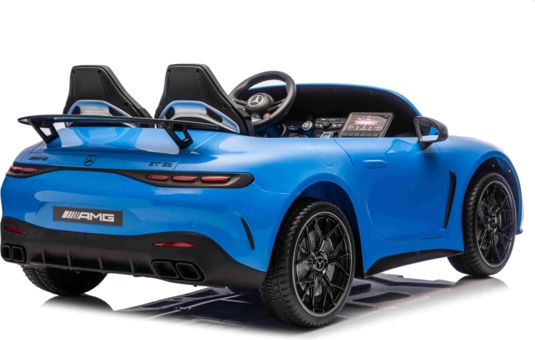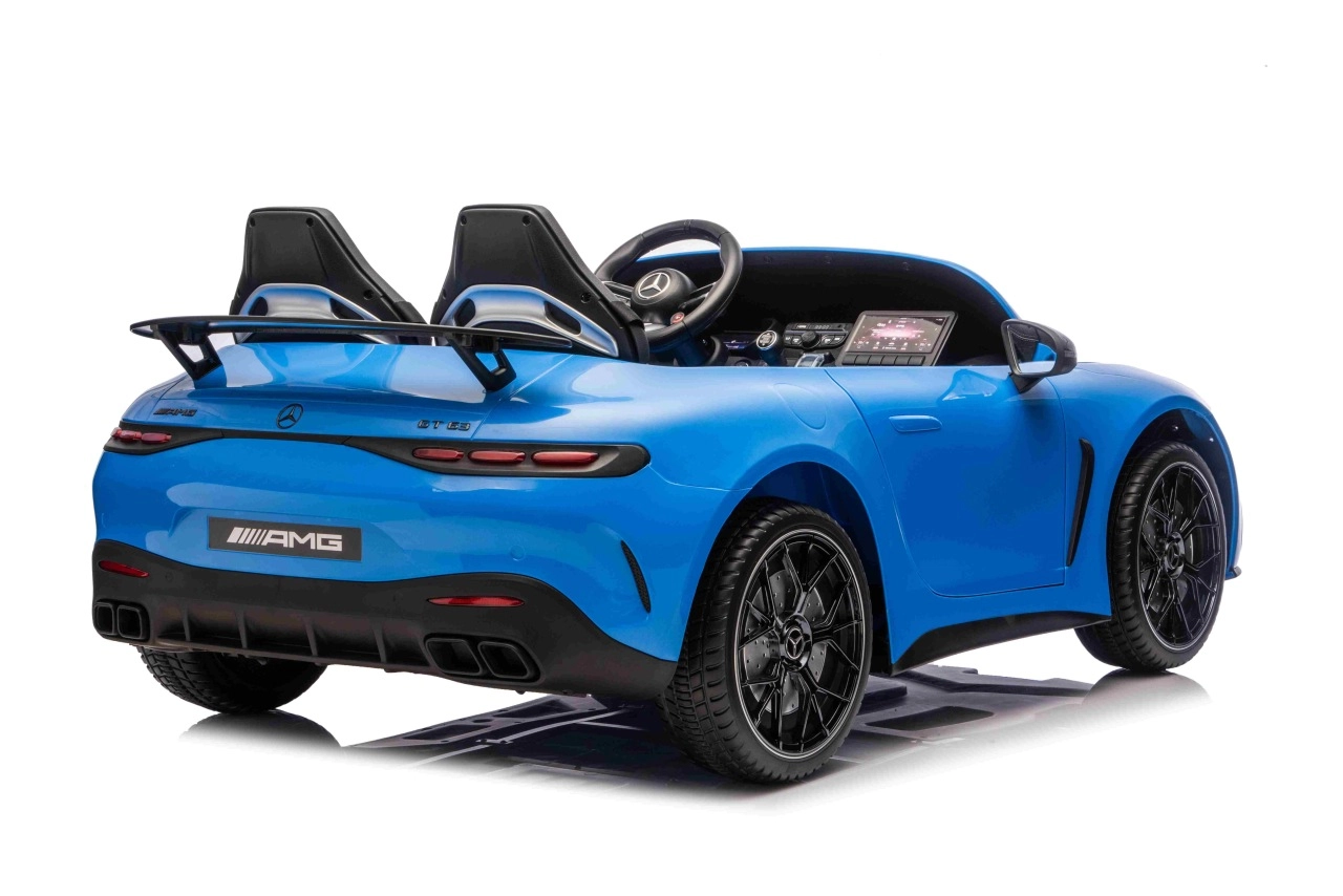 Ein Traum für kleine Fahrer: Das elektrische MERCEDES-BENZ GT 63 AMG Kinderauto in elegantem Blau vereint sportliches Design mit starker Leistung und Top-Ausstattung. Vier Motoren mit je 200 W und eine 24 V / 7 Ah Batterie sorgen für eine ruhige Fahrt, während die hintere Federung und die weichen EVA-Räder 27×9 cm Komfort auch auf unebenen Flächen bieten.