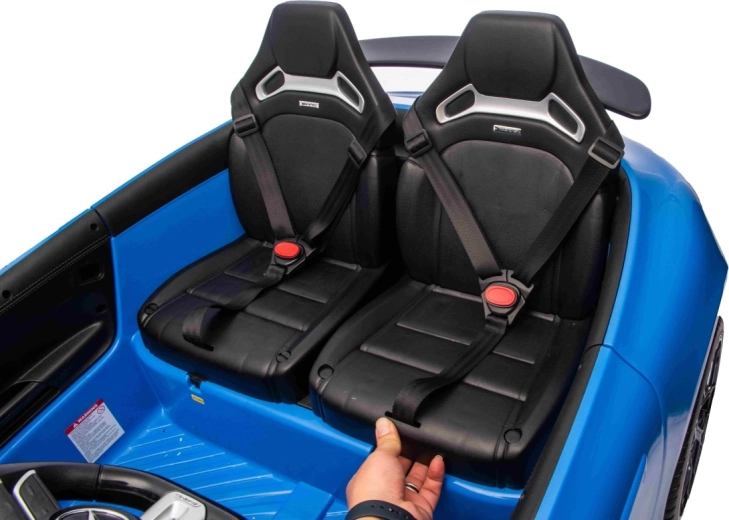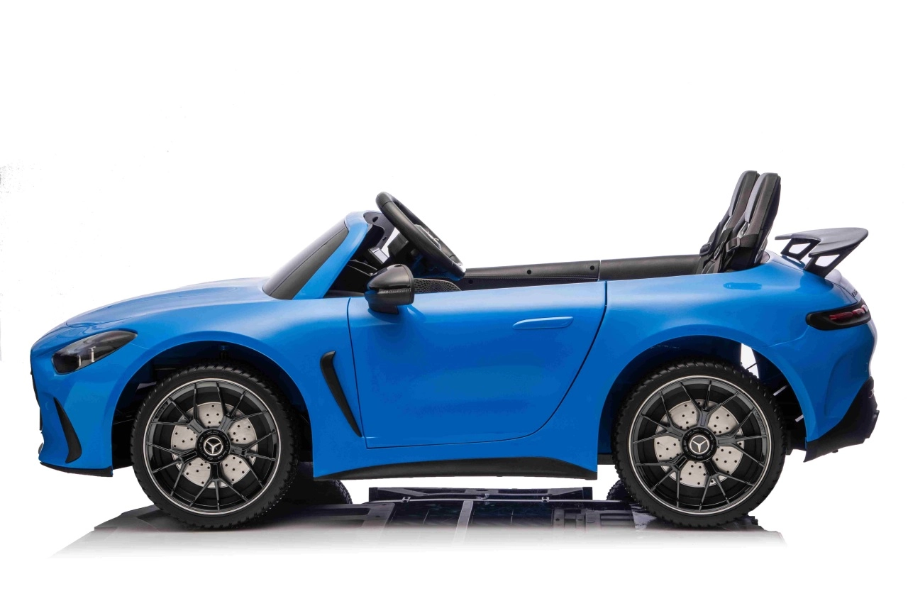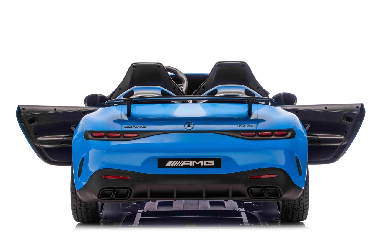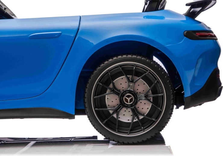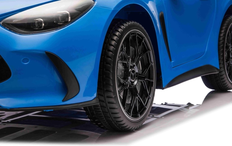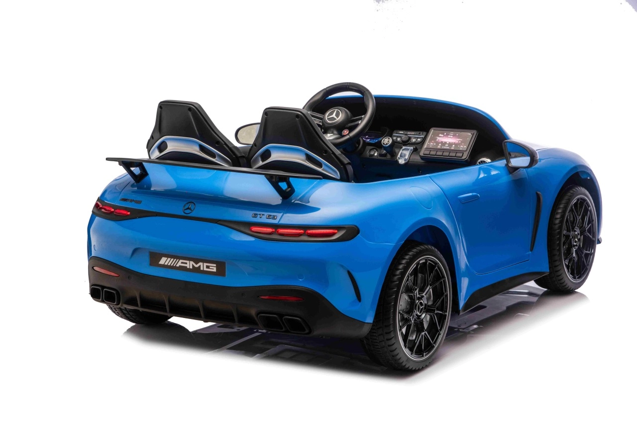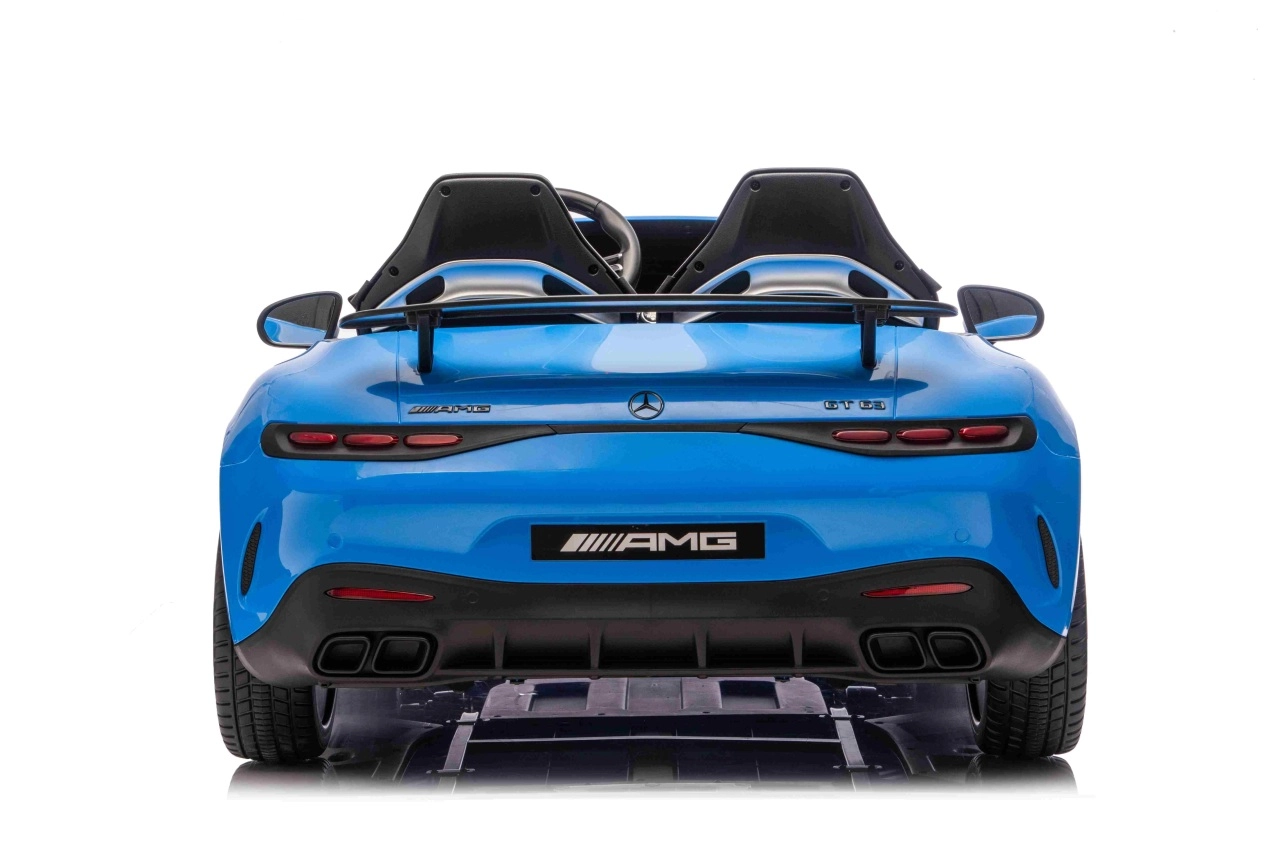 Ein Traum für kleine Fahrer: Das elektrische MERCEDES-BENZ GT 63 AMG Kinderauto in elegantem Blau vereint sportliches Design mit starker Leistung und Top-Ausstattung. Vier Motoren mit je 200 W und eine 24 V / 7 Ah Batterie sorgen für eine ruhige Fahrt, während die hintere Federung und die weichen EVA-Räder 27×9 cm Komfort auch auf unebenen Flächen bieten.