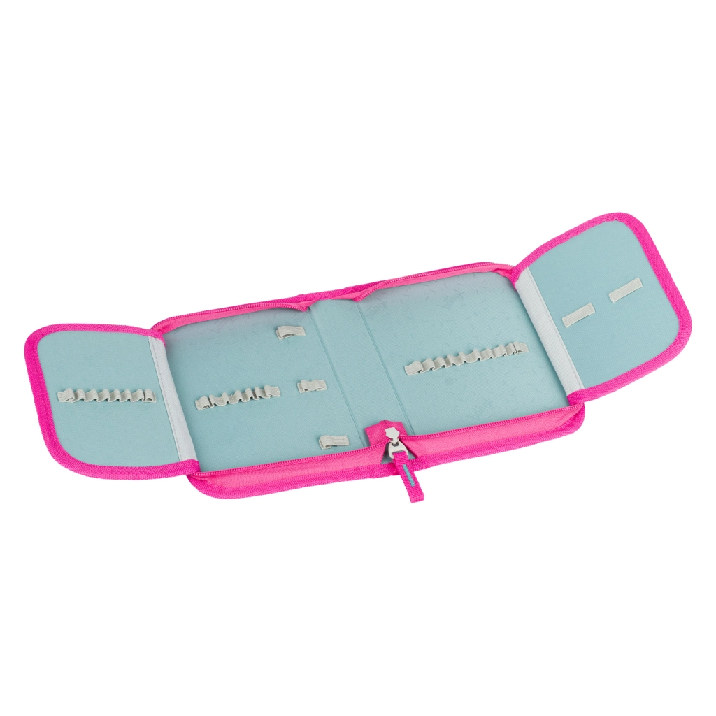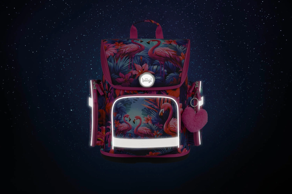 Die komplette Schulausstattung im einheitlichen Design FLAMINGOS begeistert Kinder und Eltern gleichermaßen. Die ergonomische Schultasche mit dem verstellbaren ERGO ADJUSTABLE SYSTEM wächst mit dem Kind mit, verfügt über gepolsterte Rückenfläche, verstellbare Schulter-, Brust- und Seitenriemen sowie einen zuverlässigen magnetischen Fidlock-Verschluss für einfaches und schnelles Öffnen. Wasserabweisende Materialien, ein stabiler Boden und reflektierende Elemente erhöhen Widerstandsfähigkeit und Sicherheit im Alltag.