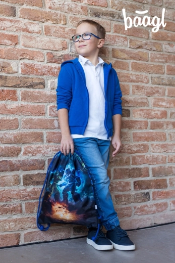 Schulset 5-in-1 Baagl Roboter – Schulranzen, Federmäppchen, Beutel, Schürze und Geldbörse