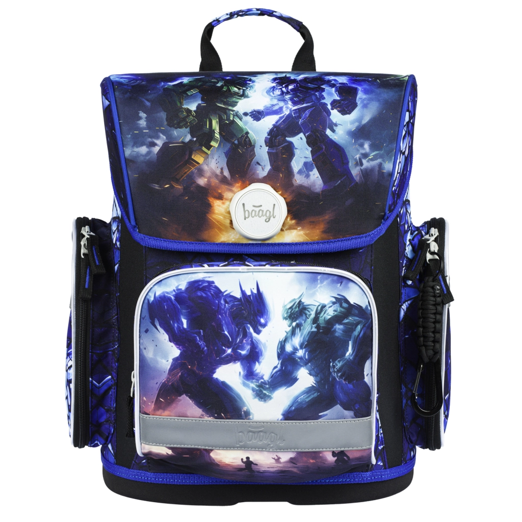 Das BAAGL Schulset Roboter bietet Kindern alles, was sie für Schule und Freizeit benötigen – im einheitlichen Design mit Motiv einer Roboter-Schlacht. Das Herzstück ist ein stabiler, leichter und ergonomischer Schulranzen mit dem verstellbaren ERGO ADJUSTABLE SYSTEM, der mit dem Kind mitwächst und eine korrekte Gewichtsverteilung unterstützt. Der magnetische Fidlock-Verschluss ermöglicht blitzschnelles Öffnen und automatisches Schließen.