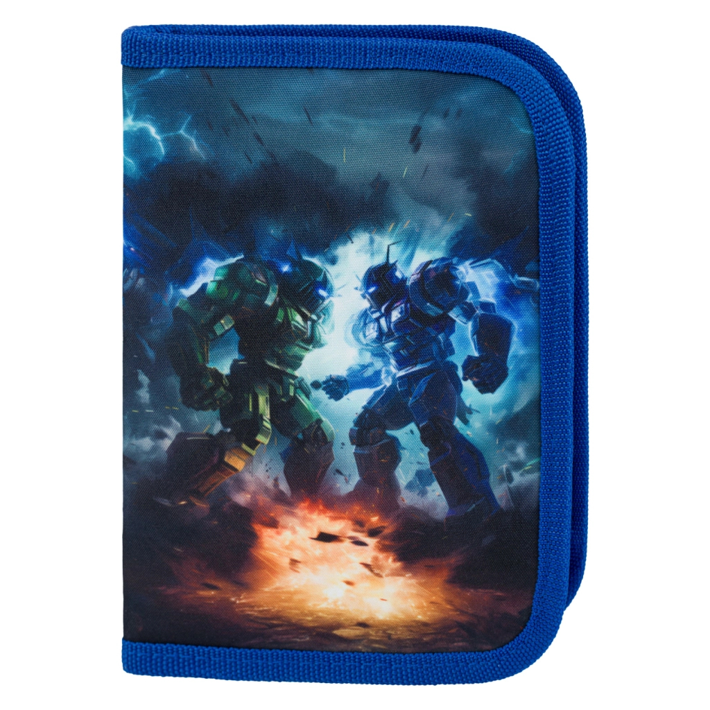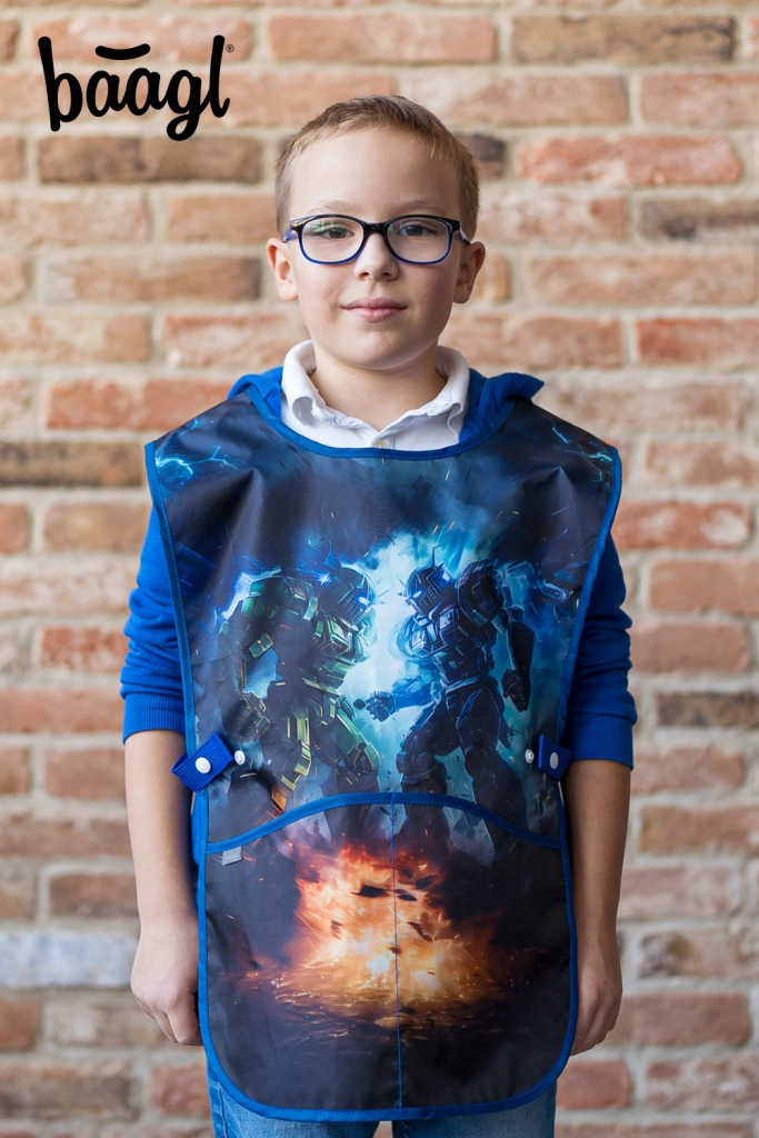 Komplette Schulausstattung für kleine Roboterfans im praktischen 5-in-1-Set. Ergonomischer Schulranzen mit verstellbarem System, geräumiges Federmäppchen, Sportbeutel, Schutzschürze und Halsgeldbörse. Dank des geringen Gewichts, der durchdachten Organisation und auffälligen Reflexelementen ist das Set ideal für die Grundschule. Ergo-Rückensystem, magnetischer Fidlock-Verschluss, wasserabweisende Materialien und reflektierende Sicherheitselemente sorgen jeden Schultag für Komfort und Sicherheit.