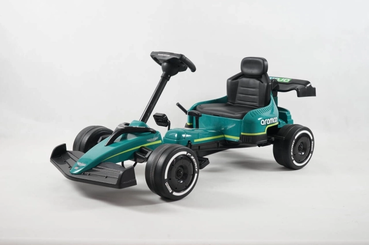 Das Go-Kart in Grün bietet Kindern ein realistisches Fahrerlebnis. Dank des Kettenantriebs mit vollständig gekapseltem Getriebe ist die Fahrt sicher und zuverlässig, während die Handbremse ein kontrolliertes Anhalten ermöglicht. EVA-Räder mit Kugellagern dämpfen Unebenheiten und gewährleisten einen leisen, sanften Lauf auf Asphalt und Pflastersteinen.
