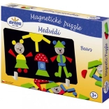 Magnetisches Puzzle Bären bietet eine unterhaltsame und kreative Möglichkeit, die Feinmotorik und Vorstellungskraft der Kinder zu entwickeln. Das Set enthält eine Magnettafel und 37 Holzteile, aus denen verschiedene Bilder erstellt werden können.