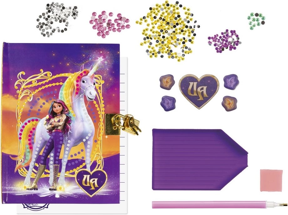 Im Set finden Sie alles Nötige – vom Applikationsstift über Wachs und Schälchen bis hin zu Steinchensets und Aufklebern. Das Schloss des Notizbuchs schützt Ihre Notizen, Ideen und geheimen Wünsche, und das Format A5 ist ideal für die Schule, unterwegs und zu Hause.