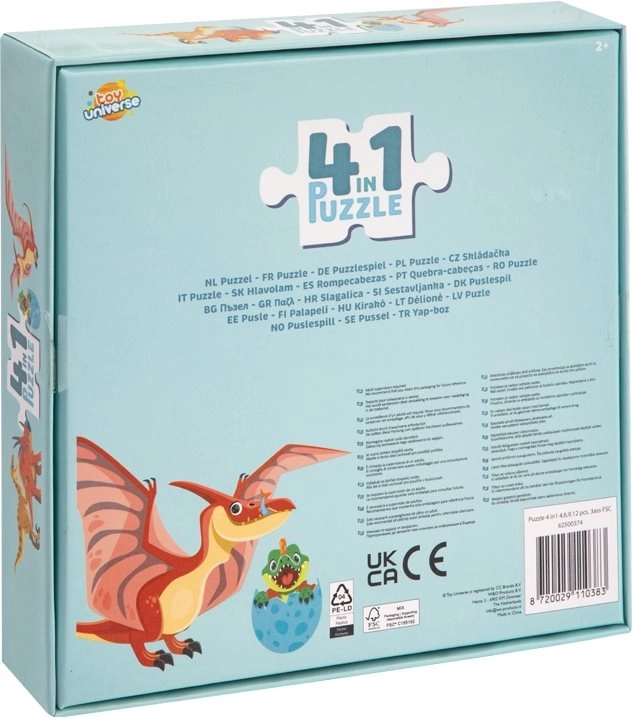 Die ideale Wahl für kleine Urzeit-Fans. Das Set enthält vier Dinosaurier-Bilder in unterschiedlichen Schwierigkeitsstufen, sodass Kinder beim Puzzeln nach und nach Sicherheit gewinnen. Mit steigender Teilezahl werden die Puzzleteile kleiner, was Kinder zu besserer Konzentration motiviert und ihre Fähigkeiten weiterentwickelt.