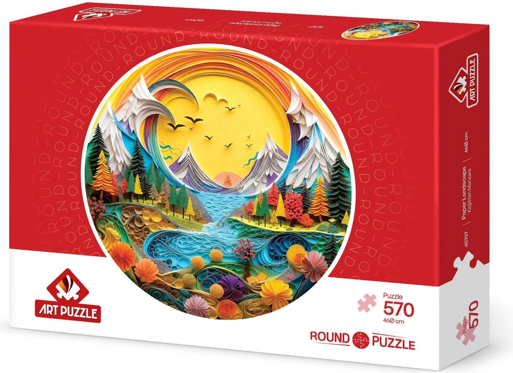 Dieses runde Puzzle begeistert alle, die eine außergewöhnliche Herausforderung und ein schönes Motiv suchen. Die runde Form bringt andere Legetechniken mit sich als klassische rechteckige Puzzles, und das Motiv „Papierlandschaft“ überzeugt durch seine zarte Ästhetik und detailreiche Ausführung.