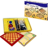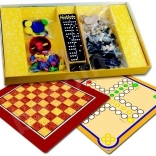 Detoa Spielesammlung bietet ein breites Spektrum beliebter Spiele für alle Generationen. Enthält Mensch ärgere dich nicht!, Domino, Würfel, Schach, Dame, Flohspiel und Mühle mit stilvollen Holz-Komponenten und Spielbrettern aus Hartpapier.