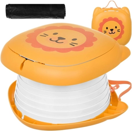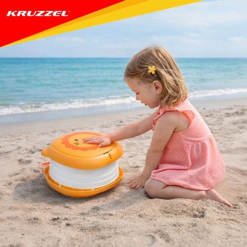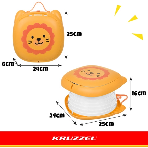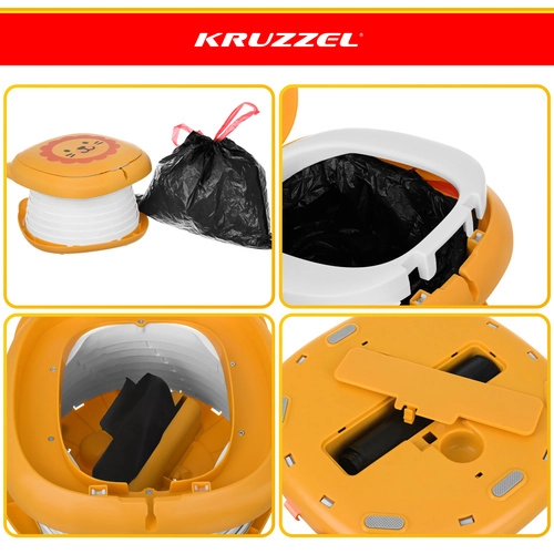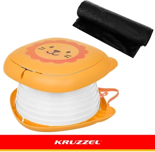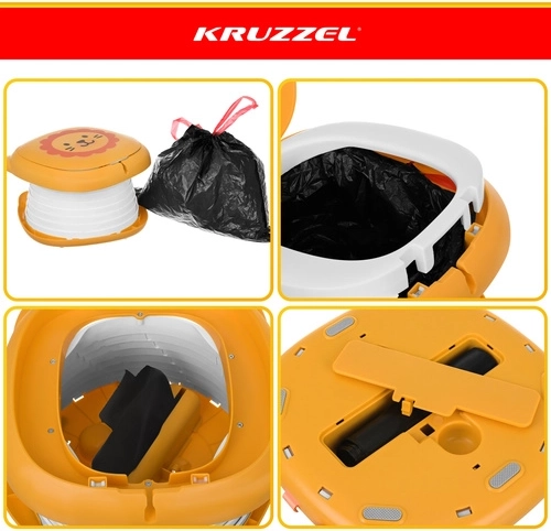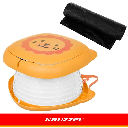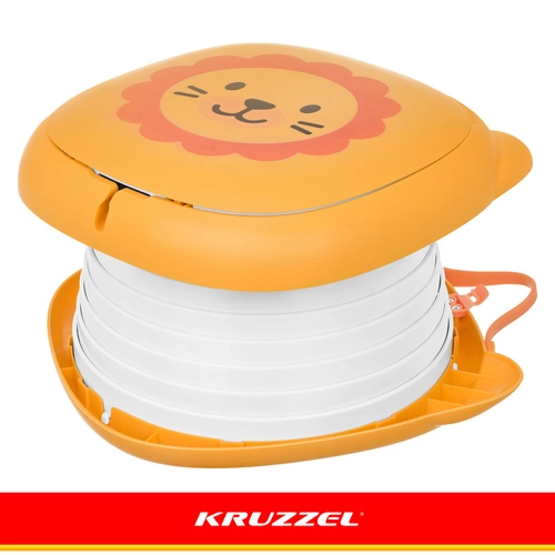 Der klappbare Töpfchen KRUZZEL – Löwe ist für den Komfort der Kinder und die Ruhe der Eltern auf Reisen konzipiert. Das niedliche Löwendesign motiviert Kinder zur Nutzung außerhalb des Zuhauses, während die stabile ABS-Konstruktion und der Silikonbalg Komfort, Stabilität und einfache Reinigung gewährleisten. Das integrierte Fach für die Beutelrolle bedeutet, dass Sie alles Nötige immer griffbereit haben.