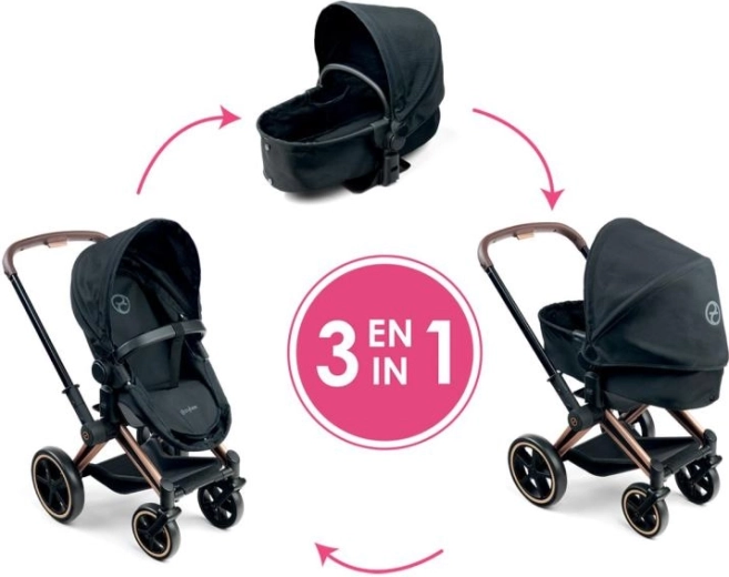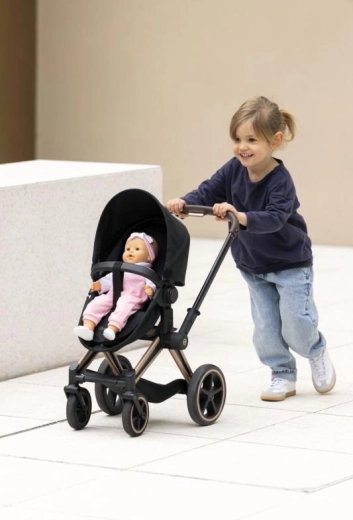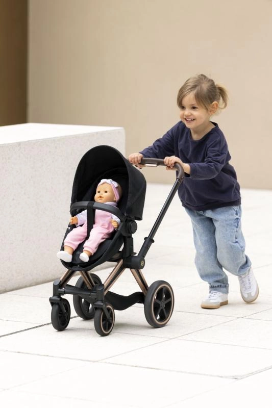Der Puppenwagen CYBEX Black 3-in-1 wurde in Zusammenarbeit mit der Marke CYBEX entwickelt und orientiert sich treu am ikonischen Modell PRIAM. So können Kinder das Elternsein mit Stil und Funktionalität wie bei einem echten Kinderwagen nachspielen. Dank der durchdachten Konstruktion dient er als Liegewanne, Sportwagen und bequemes tragbares Bettchen.