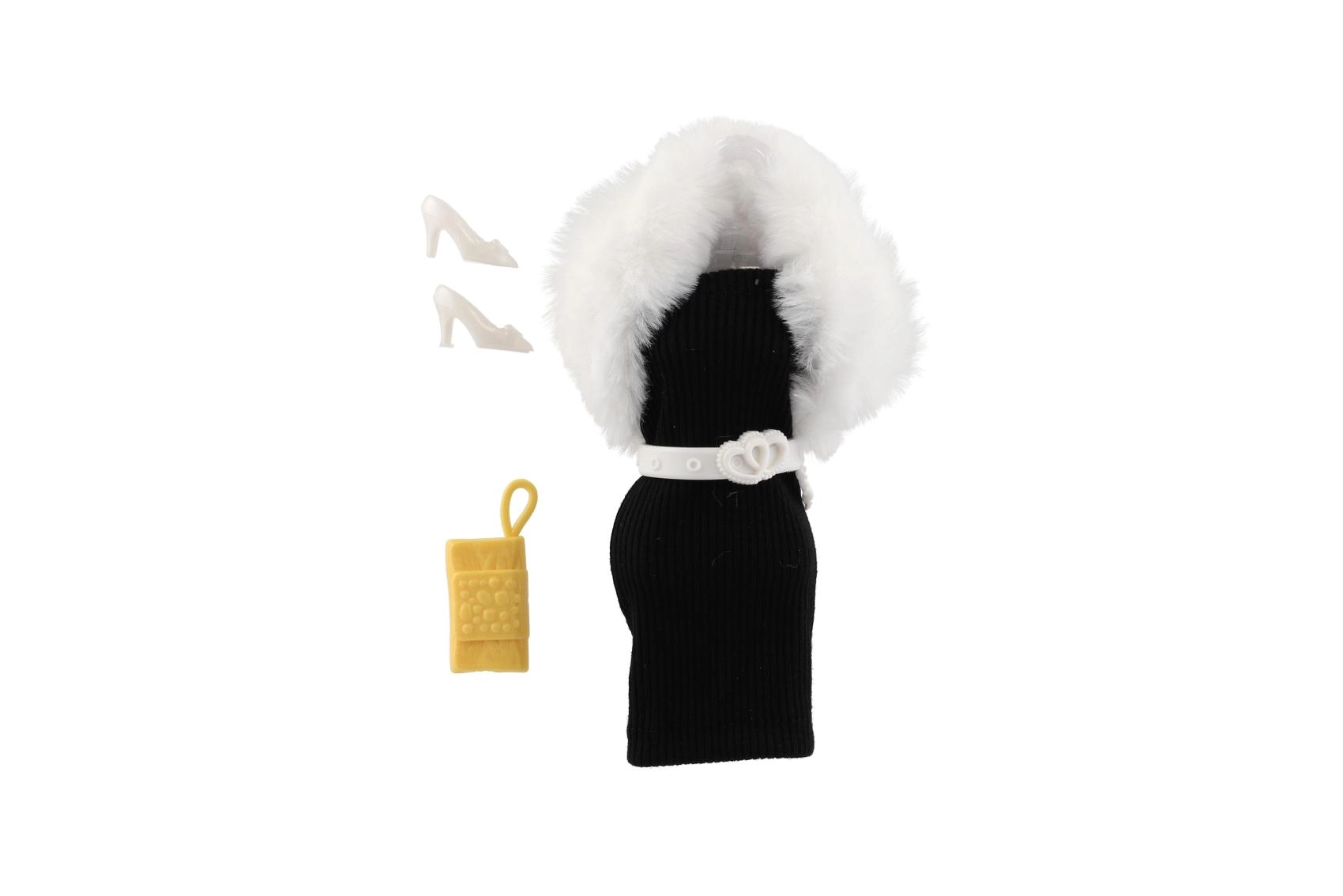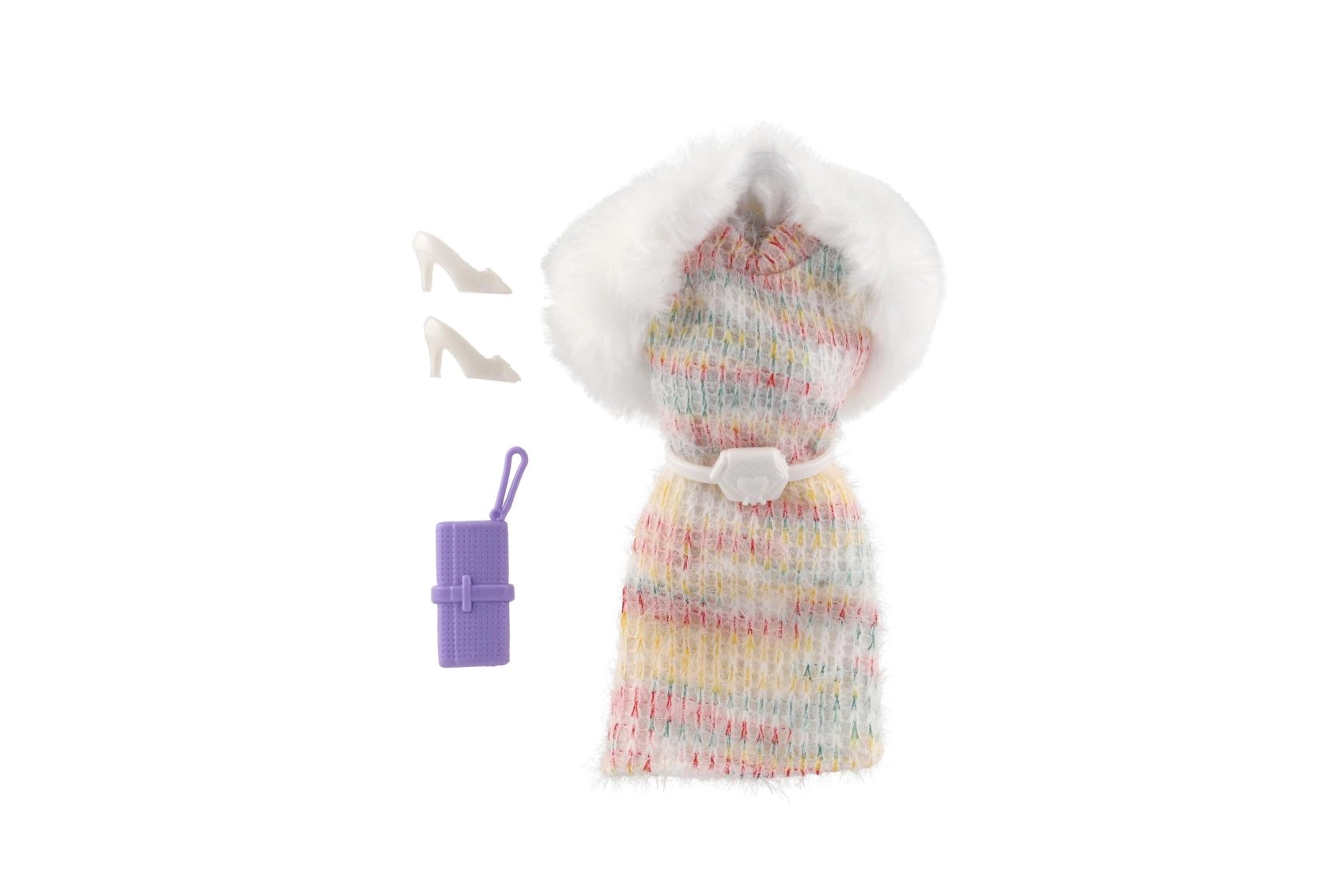 Jedes Set enthält aufeinander abgestimmte Accessoires – weiße Pumps und eine kleine Handtasche/Clutch für einen perfekt abgerundeten Stil.