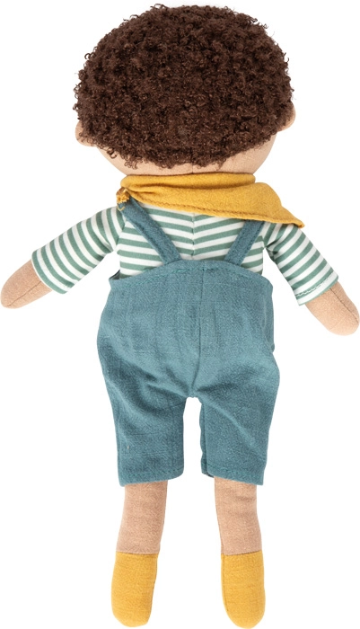Leo trägt eine niedliche Latzhose mit Taschen, ein gestreiftes T-Shirt und einen Schal in warmen Farben. Detaillierte, gestickte Gesichtszüge sorgen für sicheres Spielen ohne Kleinteile. Die einfache Pflege – die Puppe kann von Hand gewaschen werden – hält das Spielzeug sauber und bereit für tägliche Abenteuer.
