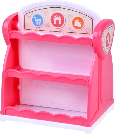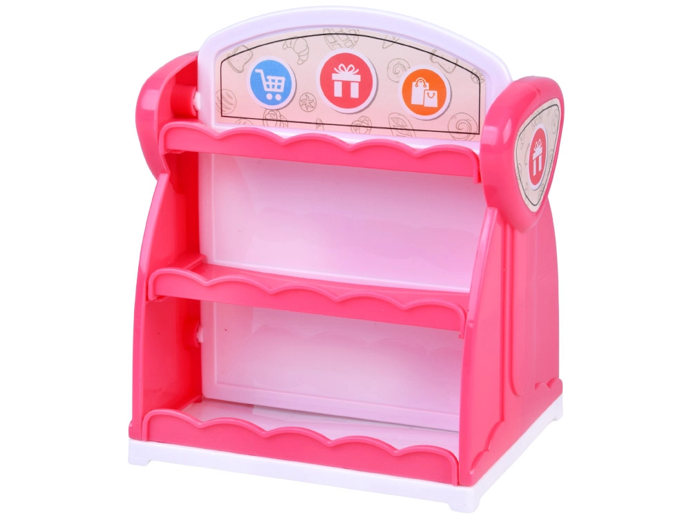 Das rosa, leichte und leicht zu reinigende Regal mit zwei Seiten und mehreren Ablagen verwandelt das Kinderzimmer in einen kleinen Laden für Knet-Kunstwerke.