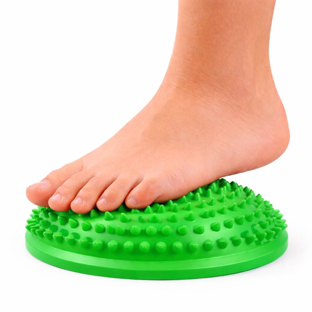 Die sensorische Halbkugel kombiniert Balancetraining und gezielte Stimulation der Füße. Die halbkugelige Form mit dichten, weichen Noppen ermöglicht eine angenehme Massage, die die Blutzirkulation, die Aktivierung der Fußgewölbemuskulatur und eine bessere Propriozeption unterstützt. Geeignet für den Heimgebrauch, Physiotherapie, Kindergärten und Schulen sowie Haltungs-Korrekturtraining.