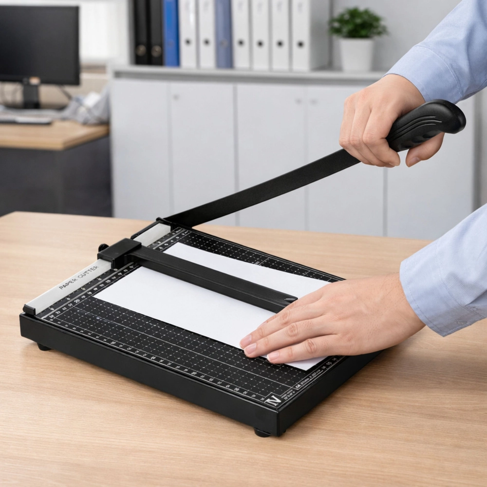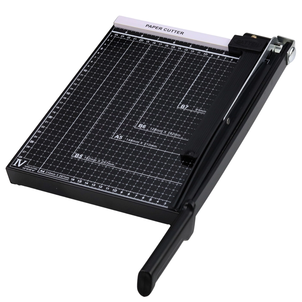 Diese A4-Papierschneidemaschine ist ideal fürs Büro, die Schule, die Druckerei und die heimische Werkstatt. Die stabile Basis mit Messlinien und Formatmarkierungen hilft, das Dokument vor dem Schnitt exakt auszurichten. Der metallene Schneidarm mit langem Hebel erleichtert einen sauberen und geraden Schnitt ohne großen Kraftaufwand.