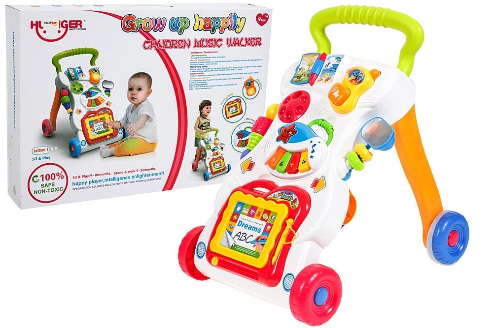 Praktischer 3-in-1-Kinderlauflernwagen unterstützt die ersten Schritte, fördert die Koordination und bietet unterhaltsame Aktivitäten. Dank der kompakten Abmessungen ideal für die Wohnung, und die Räder verfügen über Silikonbänder für sanftes Abbremsen. Das Spielzeug ist sicher, erfüllt die Normen EN71, EN62115, EN60825 und 7P und wird mit 2× AA 1,5 V betrieben (Batterien nicht enthalten).