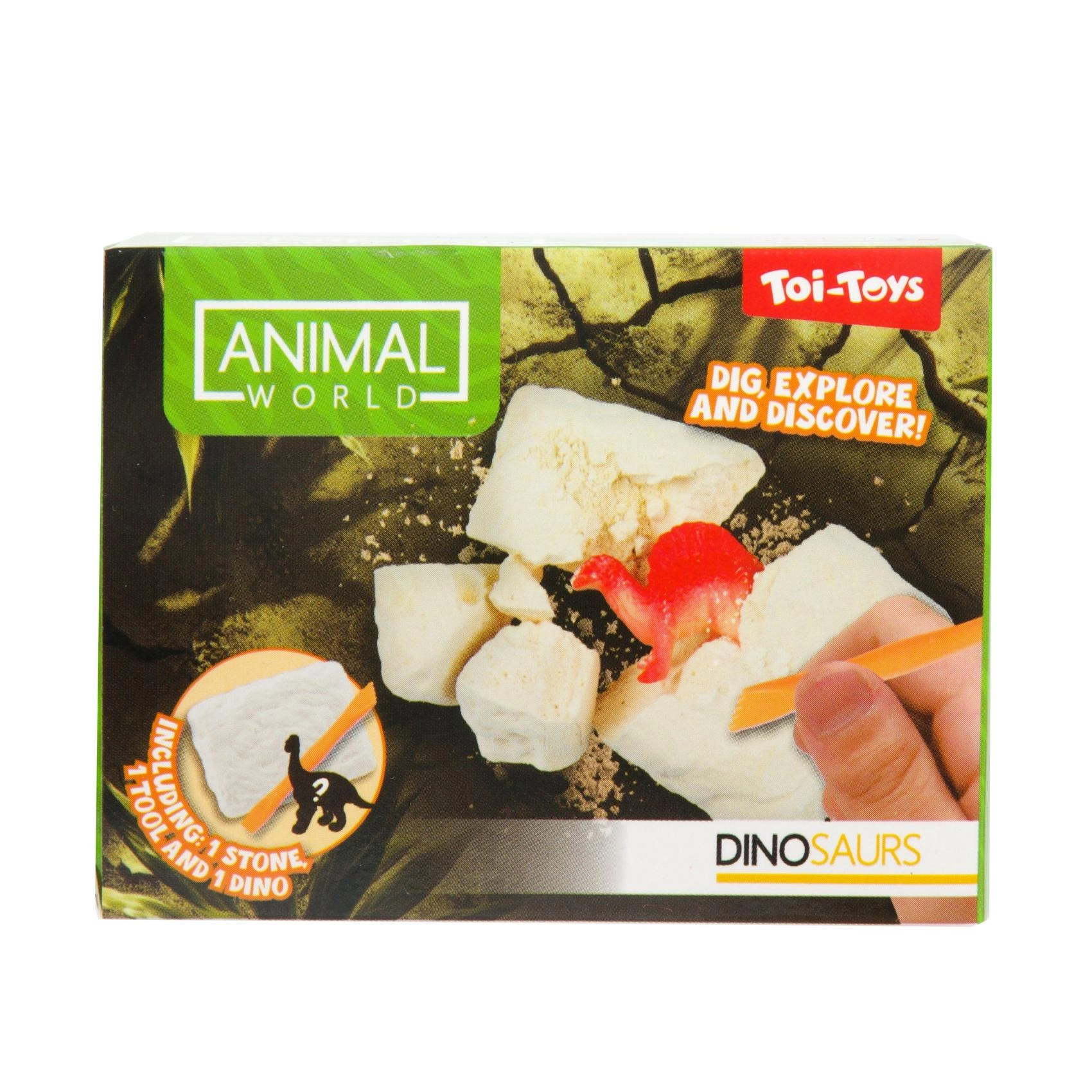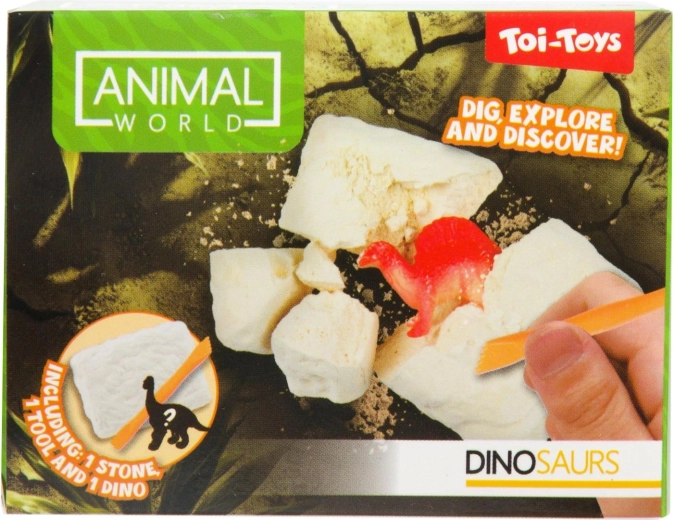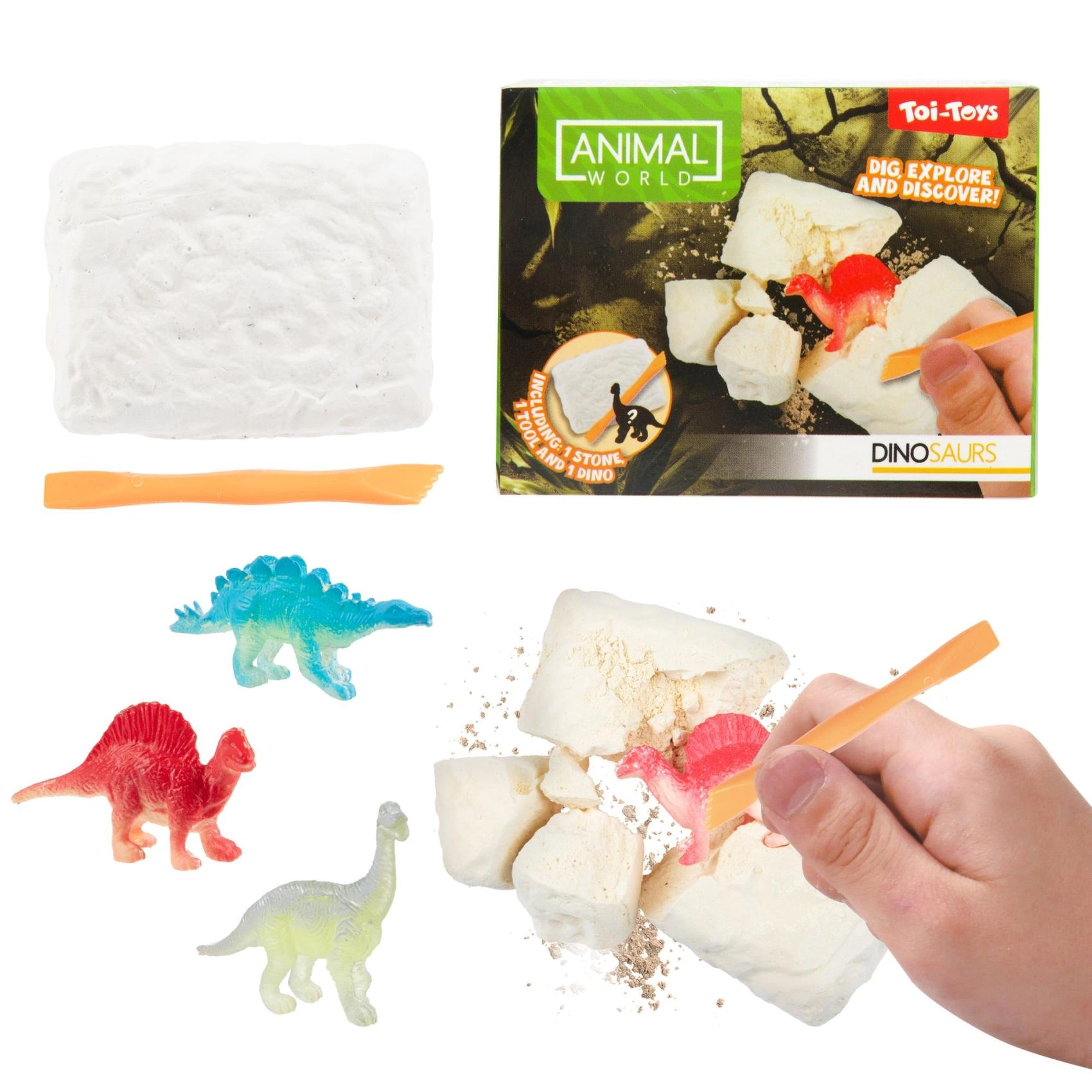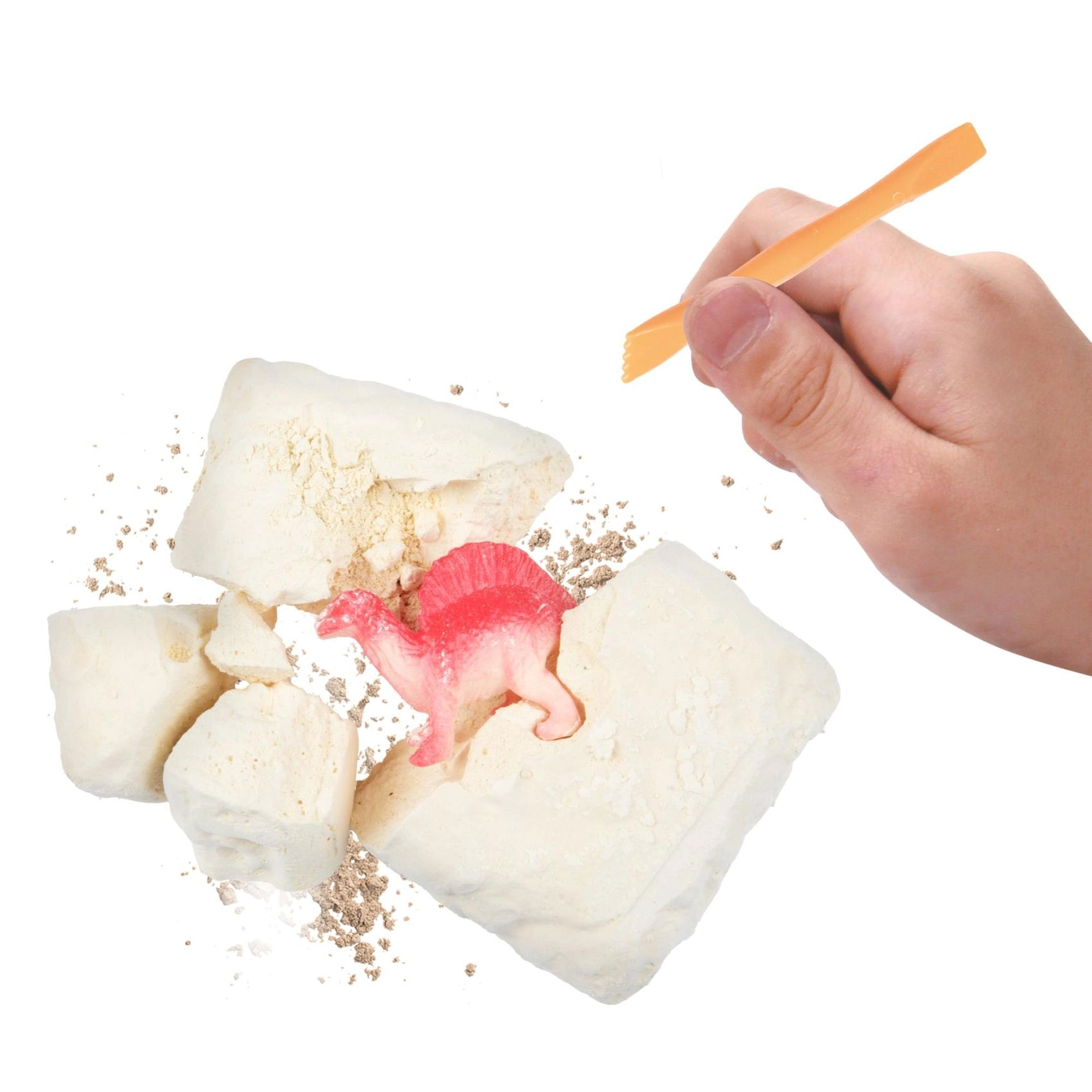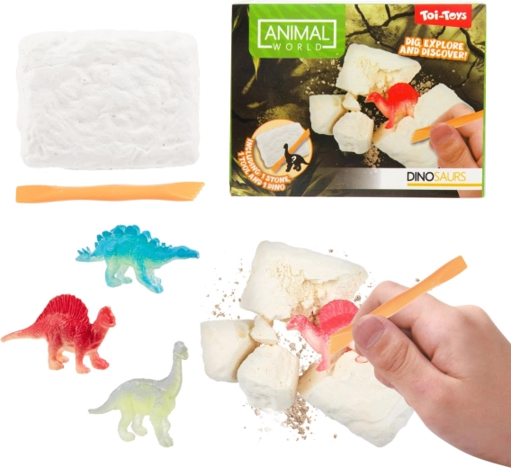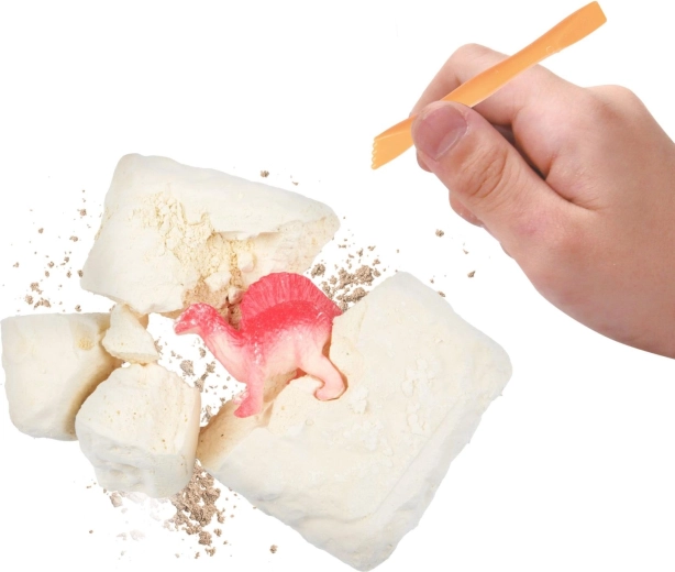 In einem Gipsblock ist eine Dinosaurierfigur versteckt, die Kinder Schritt für Schritt freilegen. Toller Spaß mit Überraschungseffekt.