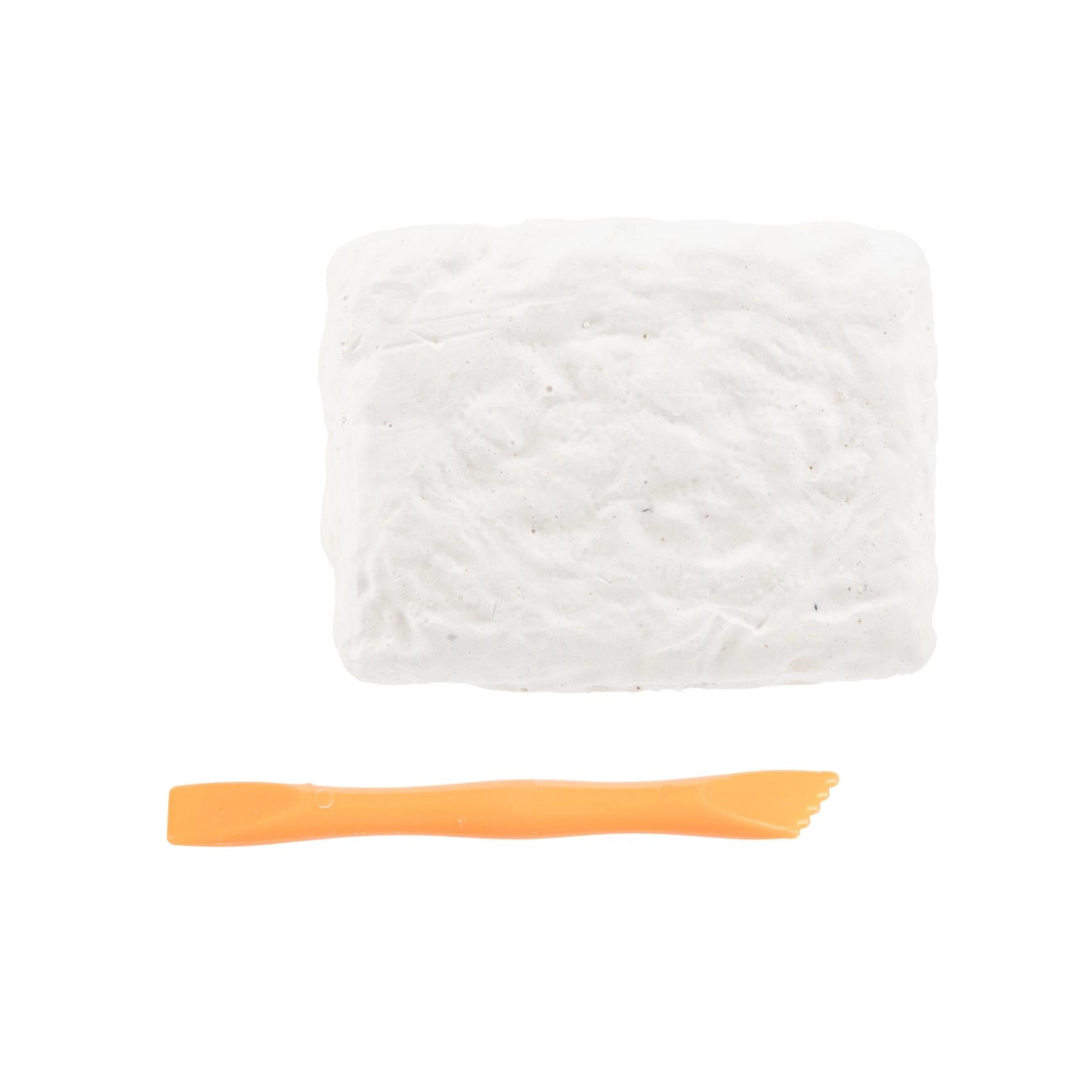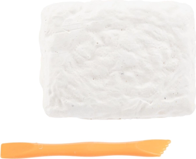 Enthalten sind ein weißer Ausgrabungsblock und ein robustes Kunststoffwerkzeug mit Spitze und gezackter Kante für einfaches Kratzen und Picken.